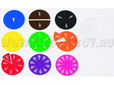 - Круги "Дроби" - Набор предназначен для наглядного изучения дробей, способствует развитию математических способностей. Состоит из 51 пропорционального сектора круга, маркированных по его долям и демонстрирующих целые и дробные части, в 9 ярких цветах.