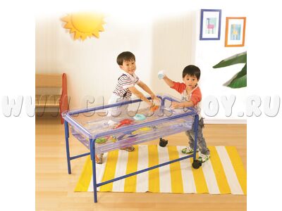 - Центр воды и песка - состоит из большого прозрачного поддона со сливным отверстием и металлической подставки с 2 колесиками для легкого перемещения. Поставляется вместе с крышкой. Игры с песком и водой положительно влияют на эмоциональное состояние детей, увеличивают объем активных движений и формируют навыки и умения манипулирования предметами.