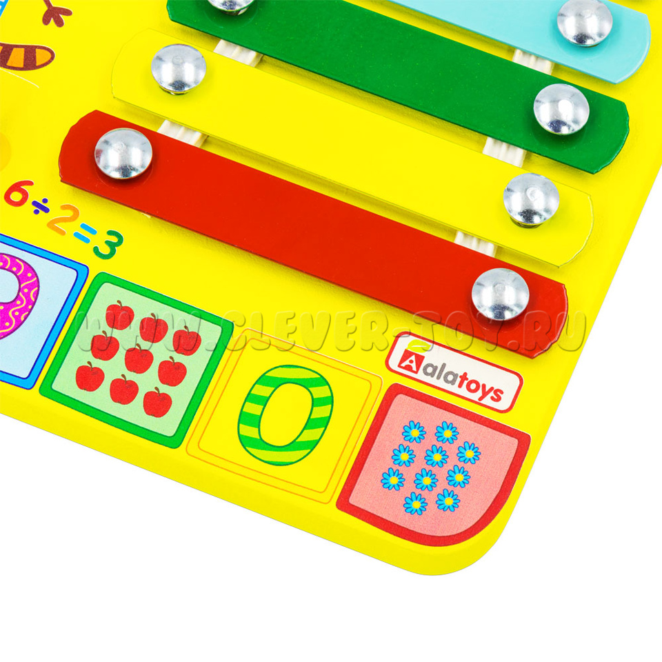 Красочный и позитивный бизиборд "Учим цифры" (лицензионный бренд "ТРИ КОТА"), созданный по методике Монтессори, обучает счету, знакомит с музыкальными звуками, цветами радуги; развивает навыки шнурования, мелкую моторику, воображение, логику и речь. Герои любимого мультфильма обязательно помогут в этом!