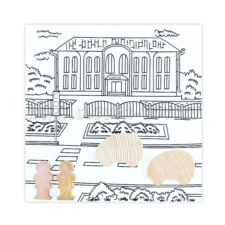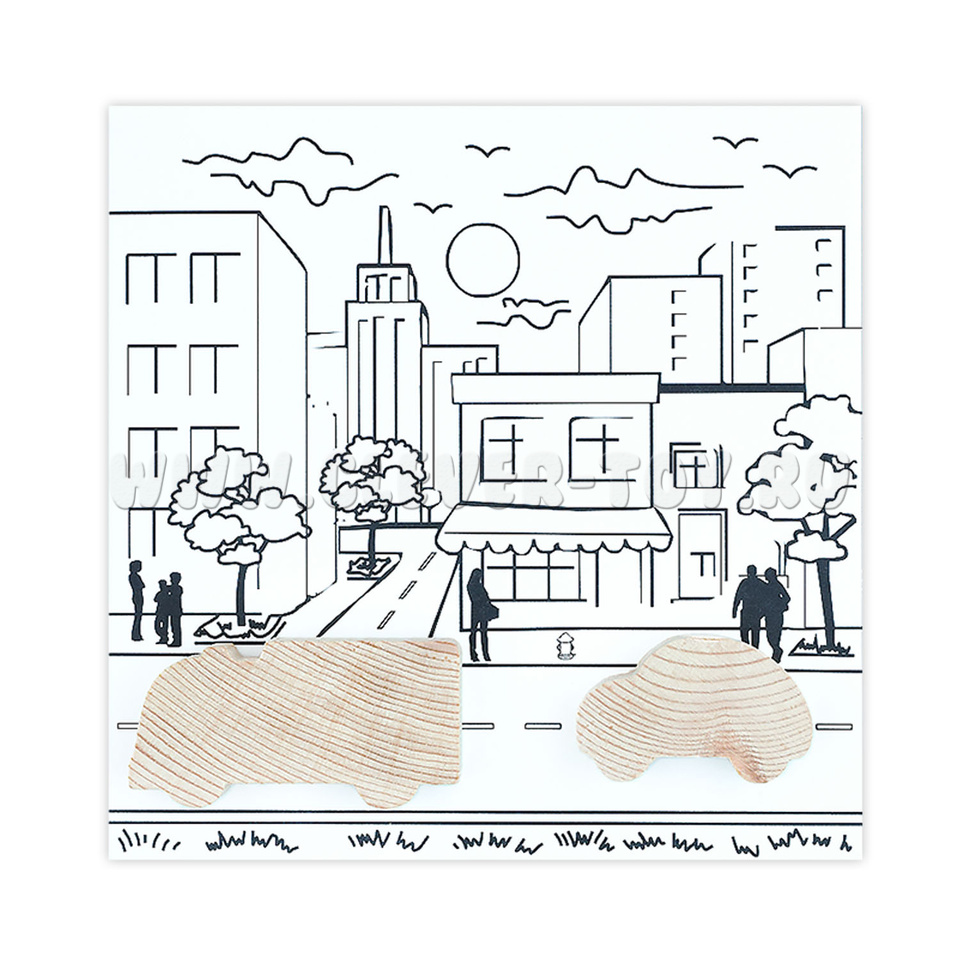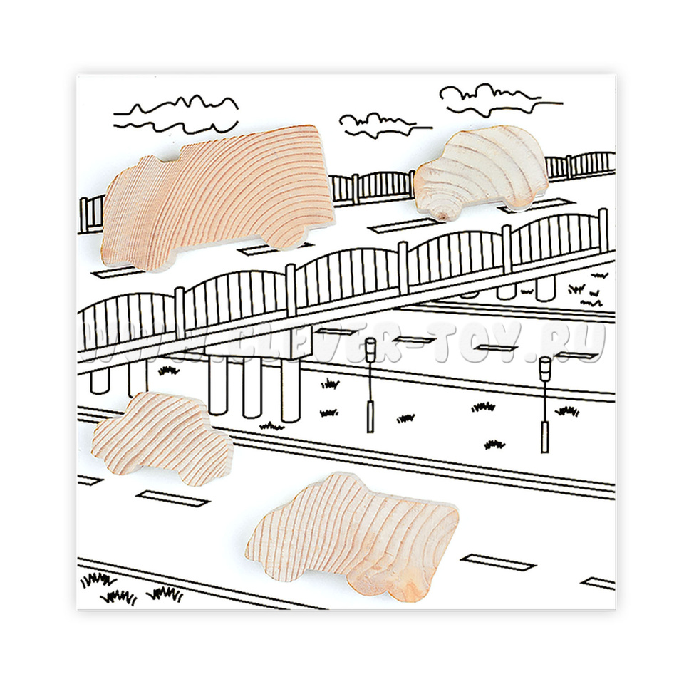 1. Деревянные фигурки автомобилей, деревьев, человесков - 18 деталей;