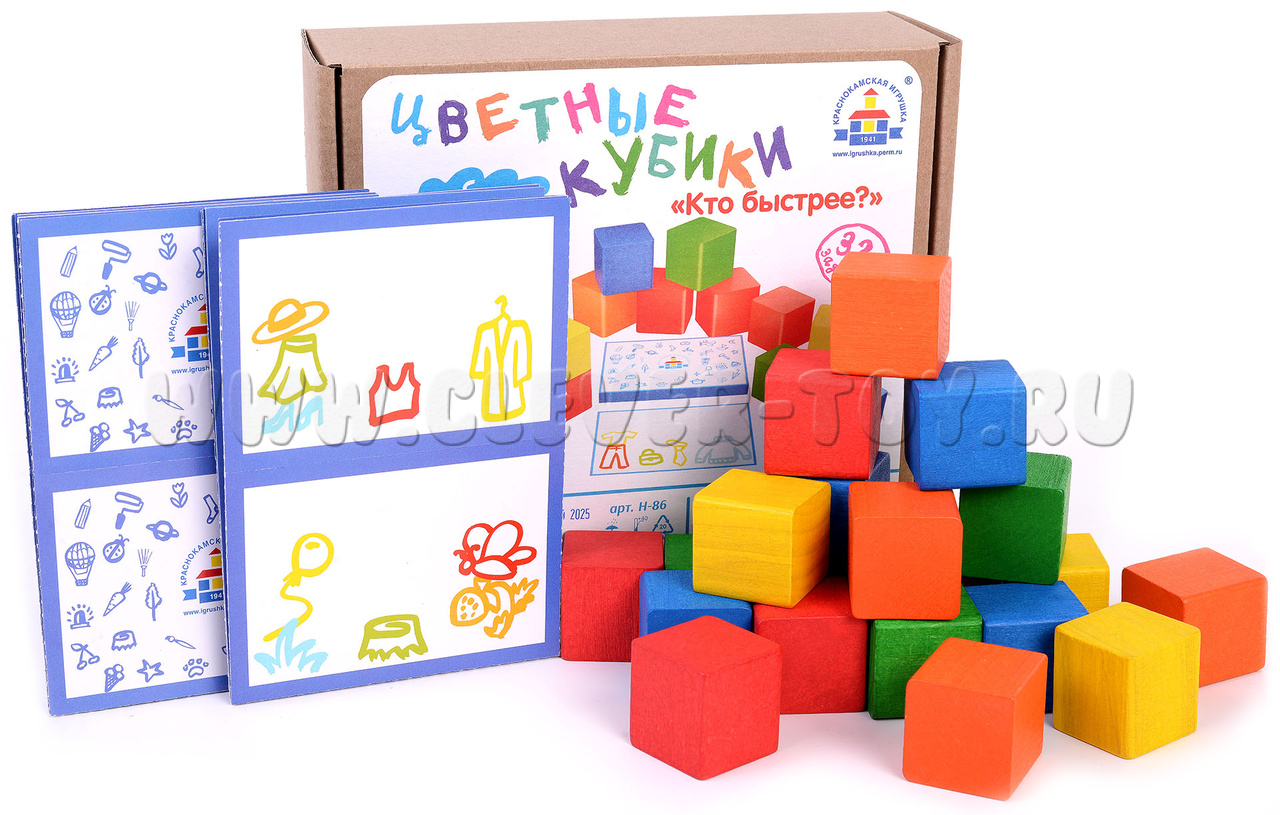 • 20 цветных деревянных кубиков,