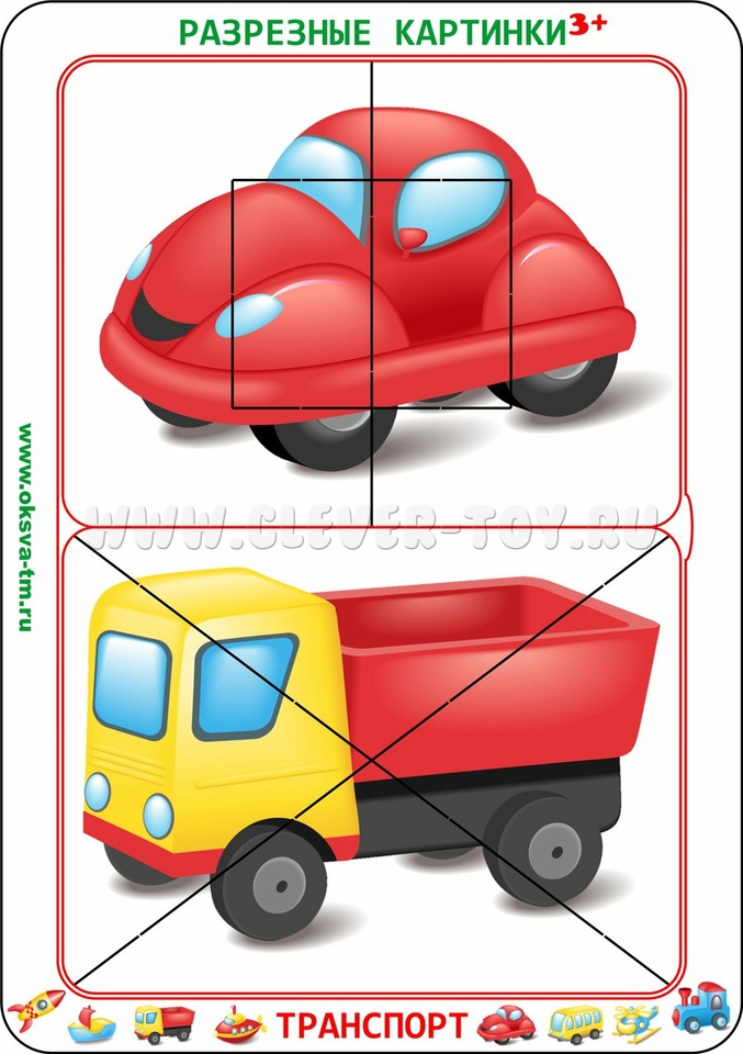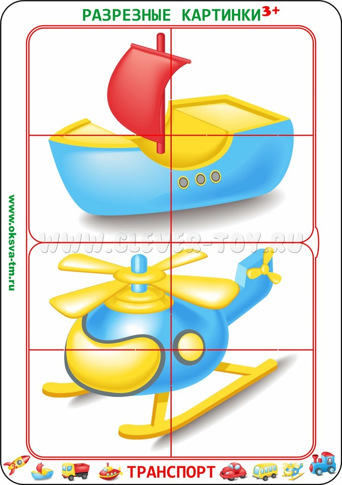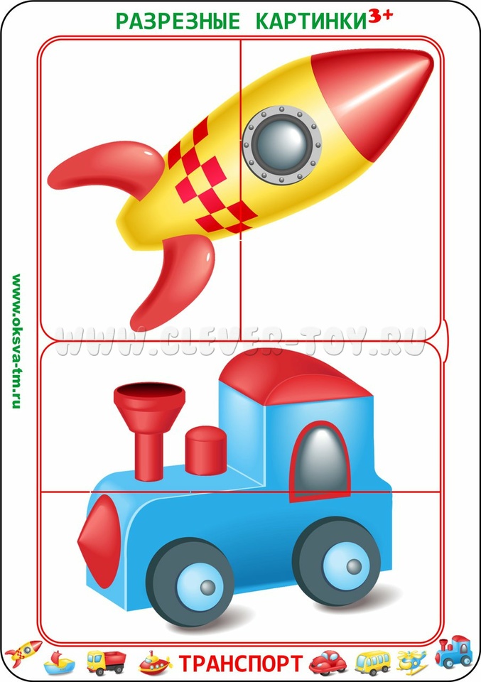 На каждой из частей есть детали изображения, по которым можно подобрать к ней недостающую часть. Частей без деталей рисунка нет.
