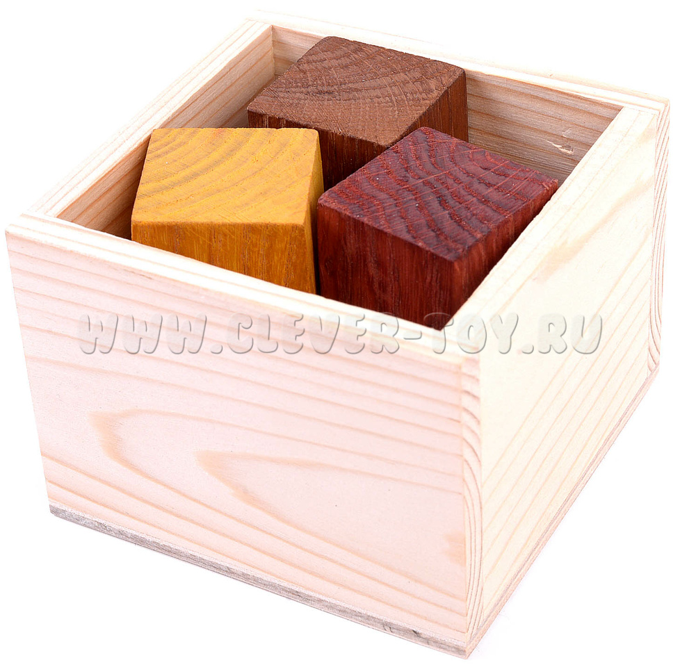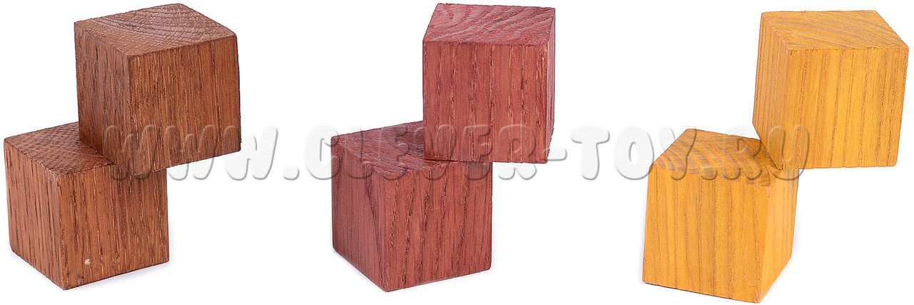 - 3 элемента из дерева разных оттенков, каждый элемент это два склеенных кубика.
