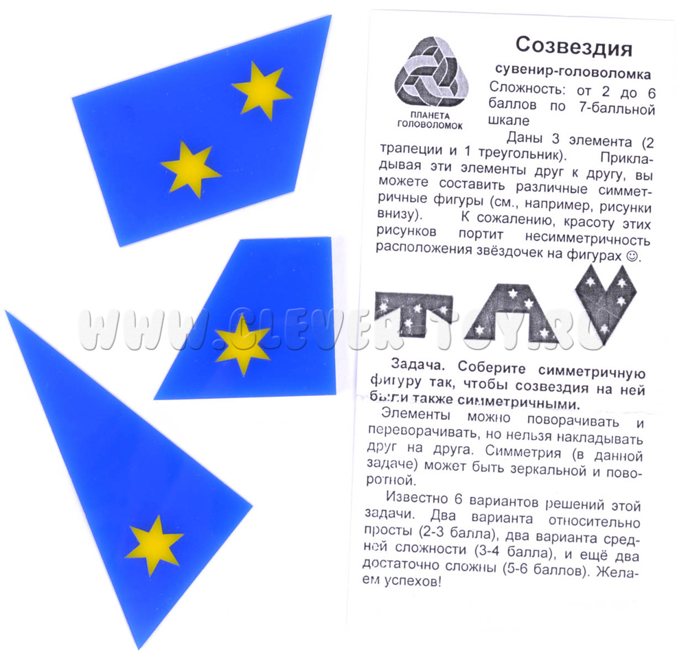 Задача. Соберите симметричную фигуру так, чтобы созвездия на ней были также симметричными.