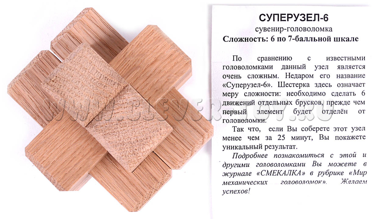 “Суперузле-6” – одна из самых сложных головоломок из семейства узловых. Попробуйте справиться с ней сами и испытать свою находчивость и терпение.