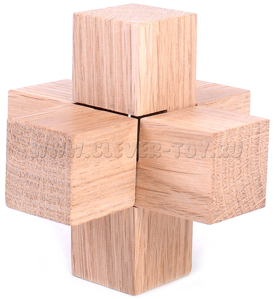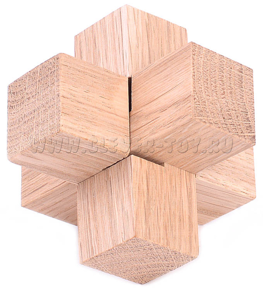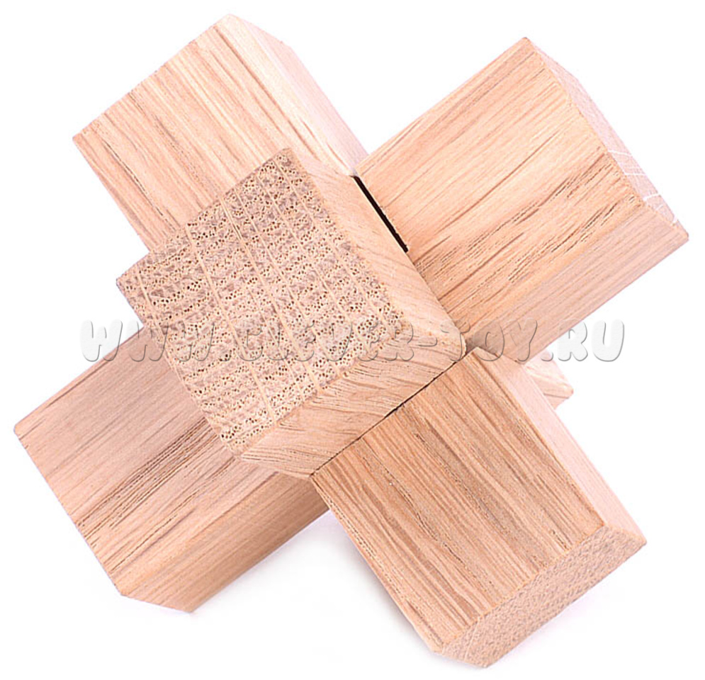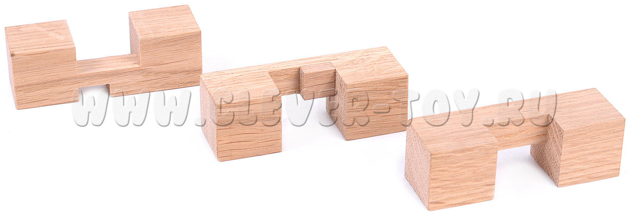 Головоломка “Узел из 3х брусочков” – представитель семейства узловых логических задач. В них основа цель – это разобрать и снова собрать деревянную фигуру. Разобрать данную головоломку будет достаточно простой задачей, но вот сборка уже потребует интеллектуальных раздумий.