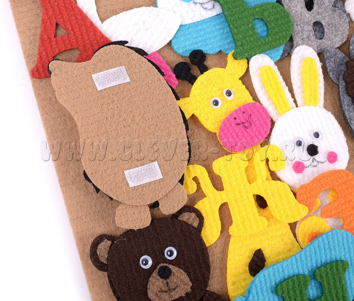 Реалистичные фигурки из современного прочного яркого материала - ковролина - помогут вашему малышу легко усвоить алфавит. В паре с каждой буквой русского алфавита в наборе есть фигурки животных, рыб и птиц, названия которых начинаются на эту букву.