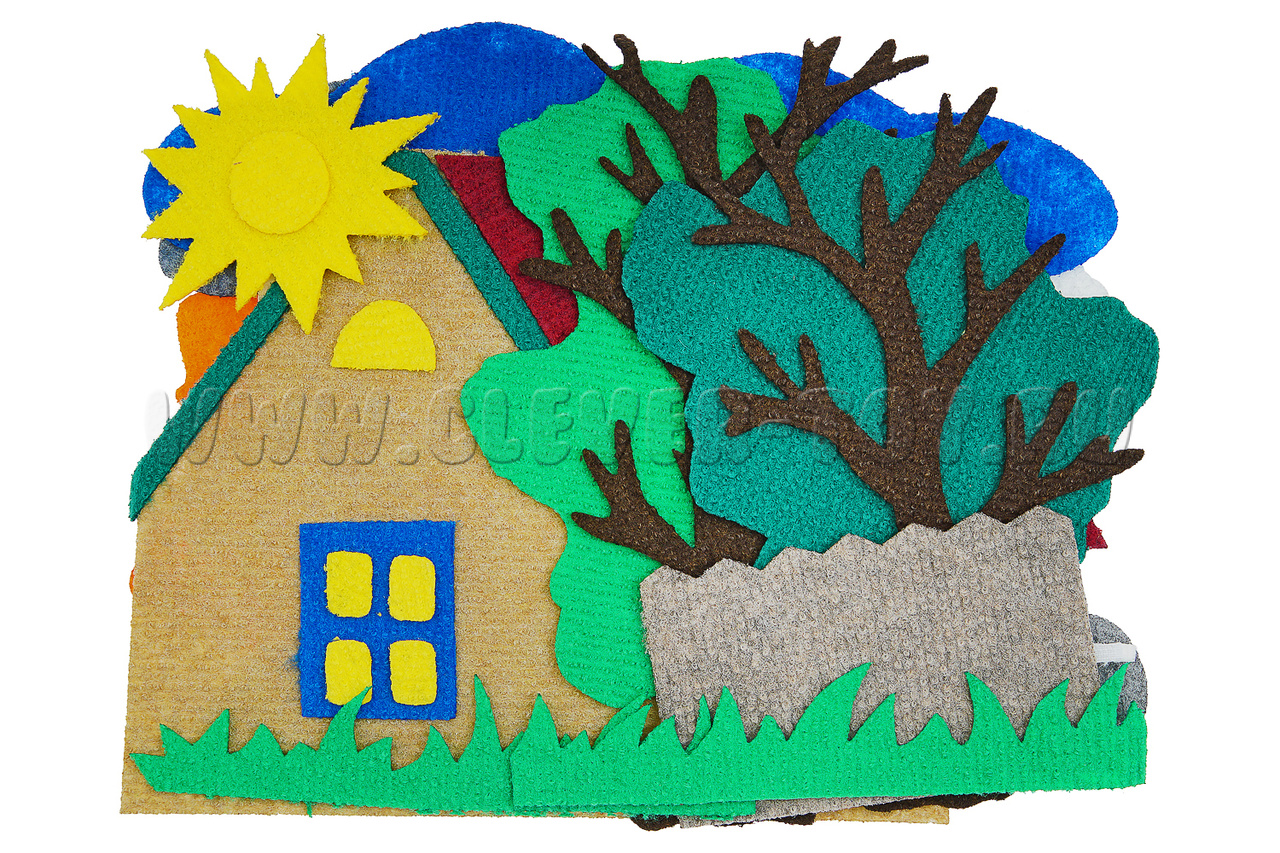 С помощью ярких и красивых ковролиновых деталей на многоразовых липучках домики превращаются в осенний, зимний, весенний и летний. Набор рекомендован опытными педагогами дошкольного образования для того, чтобы в игровой форме познакомить ребёнка с разными временами года.