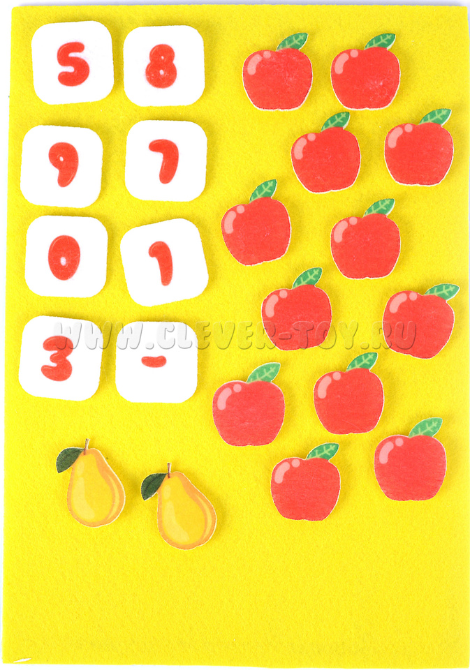 • знаки (сложение, вычитание, равно) для составления простых примеров.