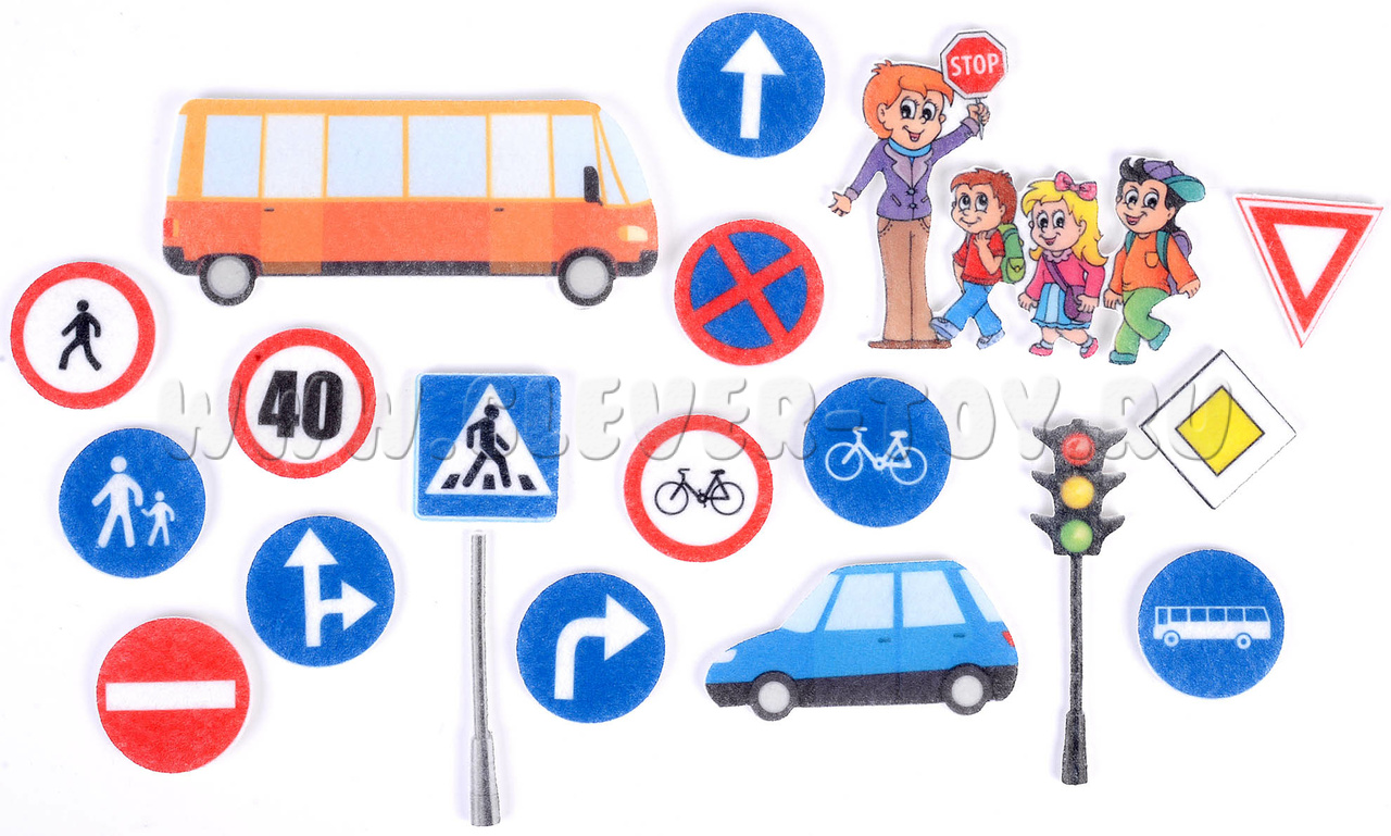 • 14 дорожных знаков, включая знак «Проезда нет», «Пешеходный переход», «Ограничение скорости», «Главная дорога», «Уступи дорогу» и другие;