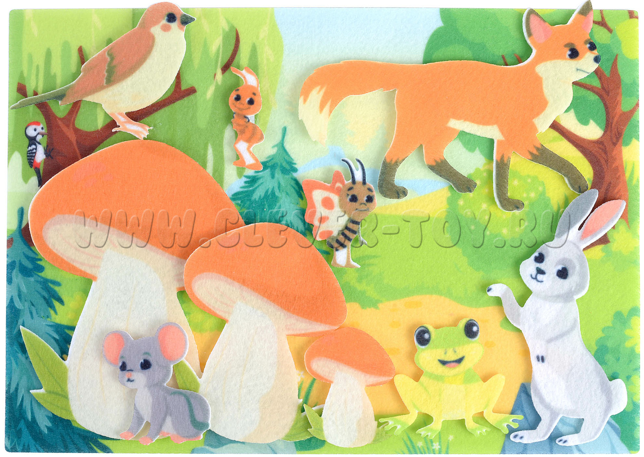 Игровой набор «Под грибом» - увлекательный мир лесных приключений. Набор может использоваться, как для домашнего ознакомления ребенка с лесными обитателями, так и в дошкольных учреждениях.