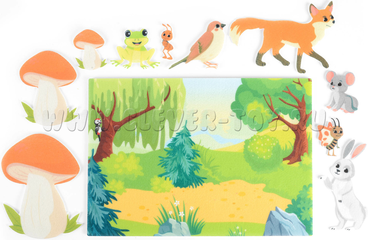 • Для изучения природы и животных: Ребенок может изучать различных обитателей леса, их внешний вид и поведение, играя с фигурками и перемещая их на игровом поле.