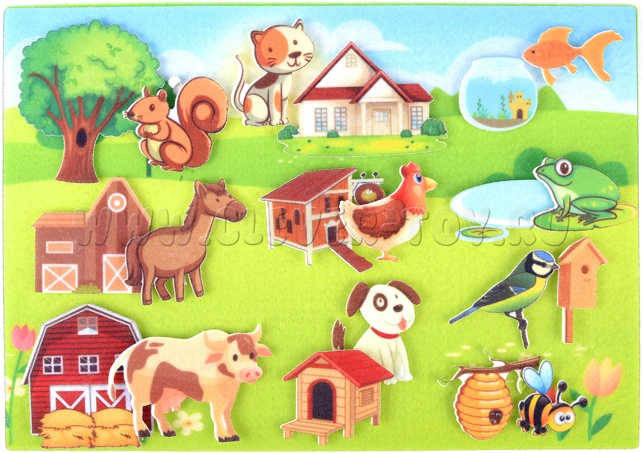 Где только не обитают зверята?! Кто на дереве, кто в воде, а кто в конуре. С помощью тканевого набора «Кто и где живет» ребенок в увлекательной форме узнает, какие жилища бывают у животных. Регулярно занимаясь с учебным пособием, дети узнают больше об окружающем мире, расширят кругозор. Параллельно, при взаимодействии с мягкими деталями они смогут развить мелкую моторику.
