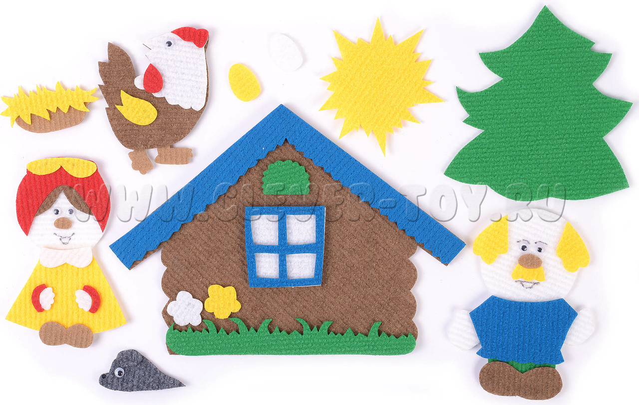 • персонажи – дед, баба, курица, мышка;