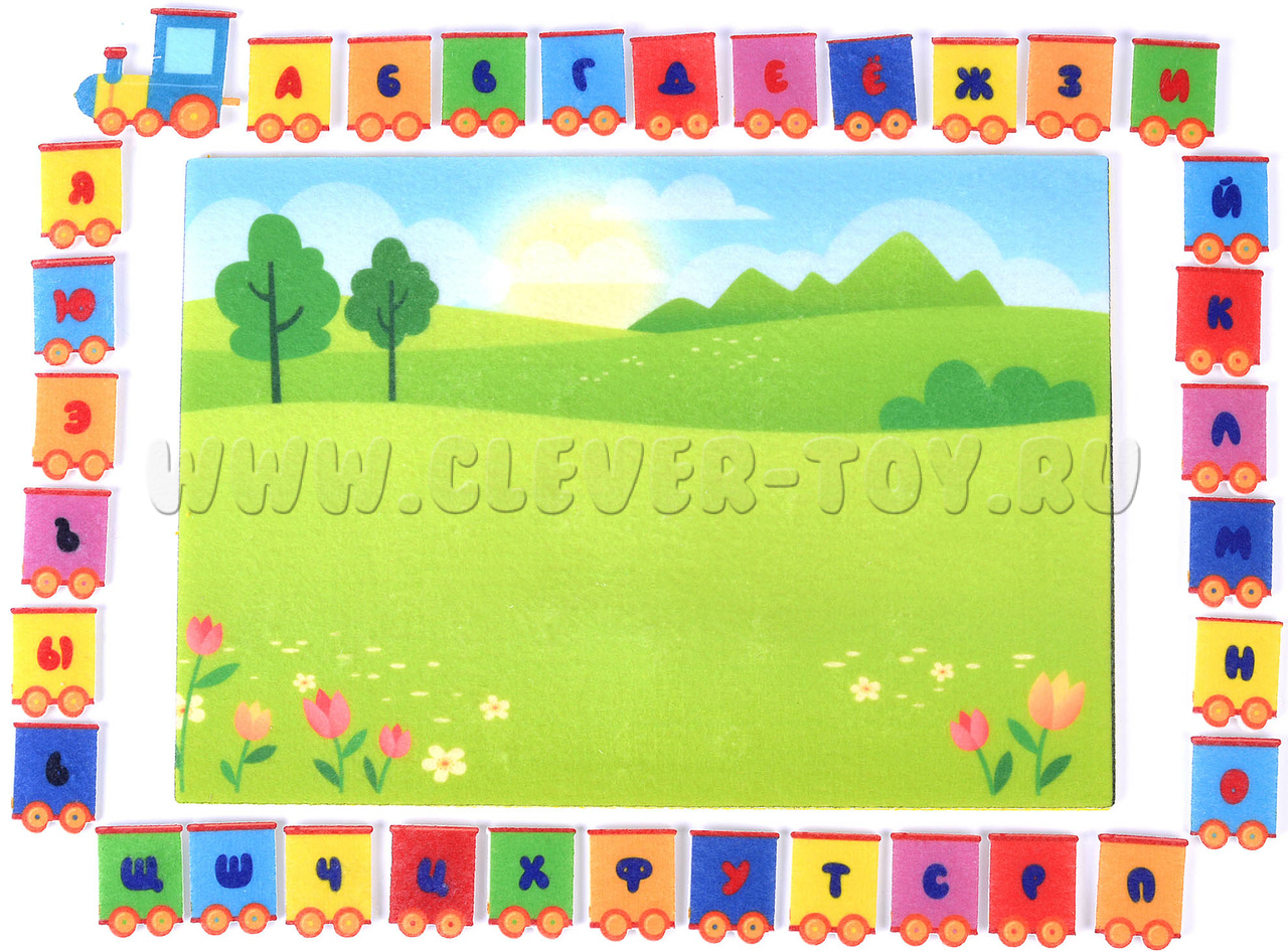 Сзади у каждой фигурки есть липучка, с помощью которой можно прикрепить вагончик на поле. Материал игры - безопасный фетр.