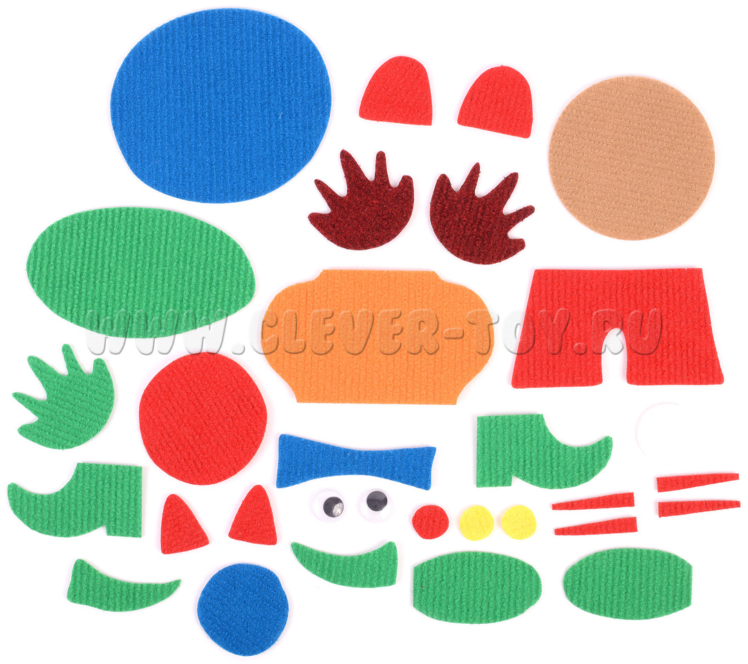 • 28 игровых элементов разных размеров, цветов и форм на многоразовых липучках;