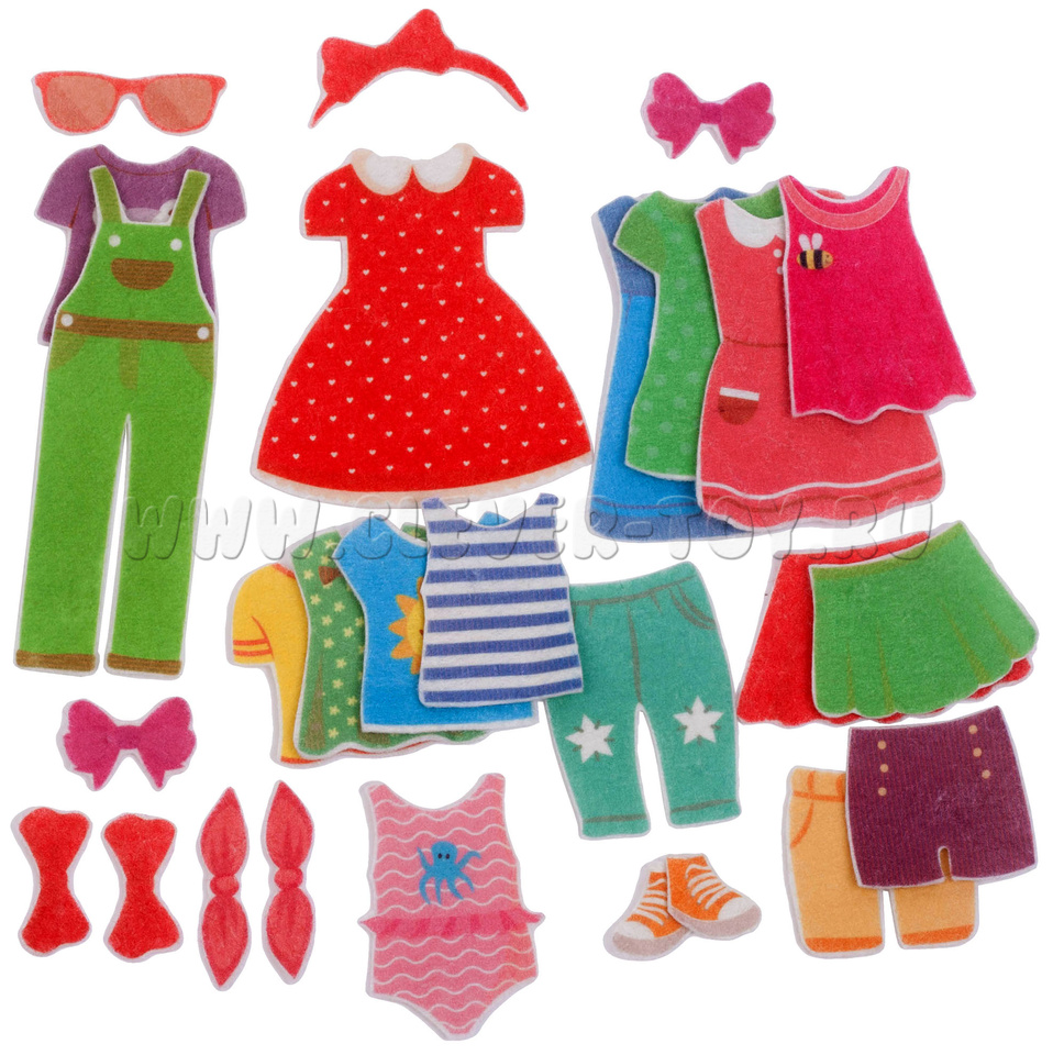 Игра-конструктор для детей старше 3-х лет. Авторская развивающая книга «Одежда для девочки» из ковролина с фигурами на липучках от российской компании «Lip-Lip».
