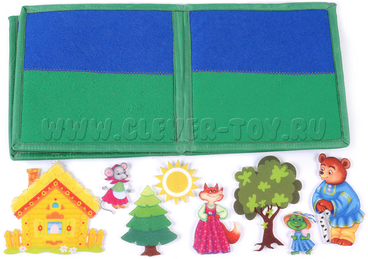 Авторская развивающая книга из ковролина с фигурами на липучках от российской компании «Lip-Lip» по мотивам русской народной сказки «Теремок». Ручная работа.