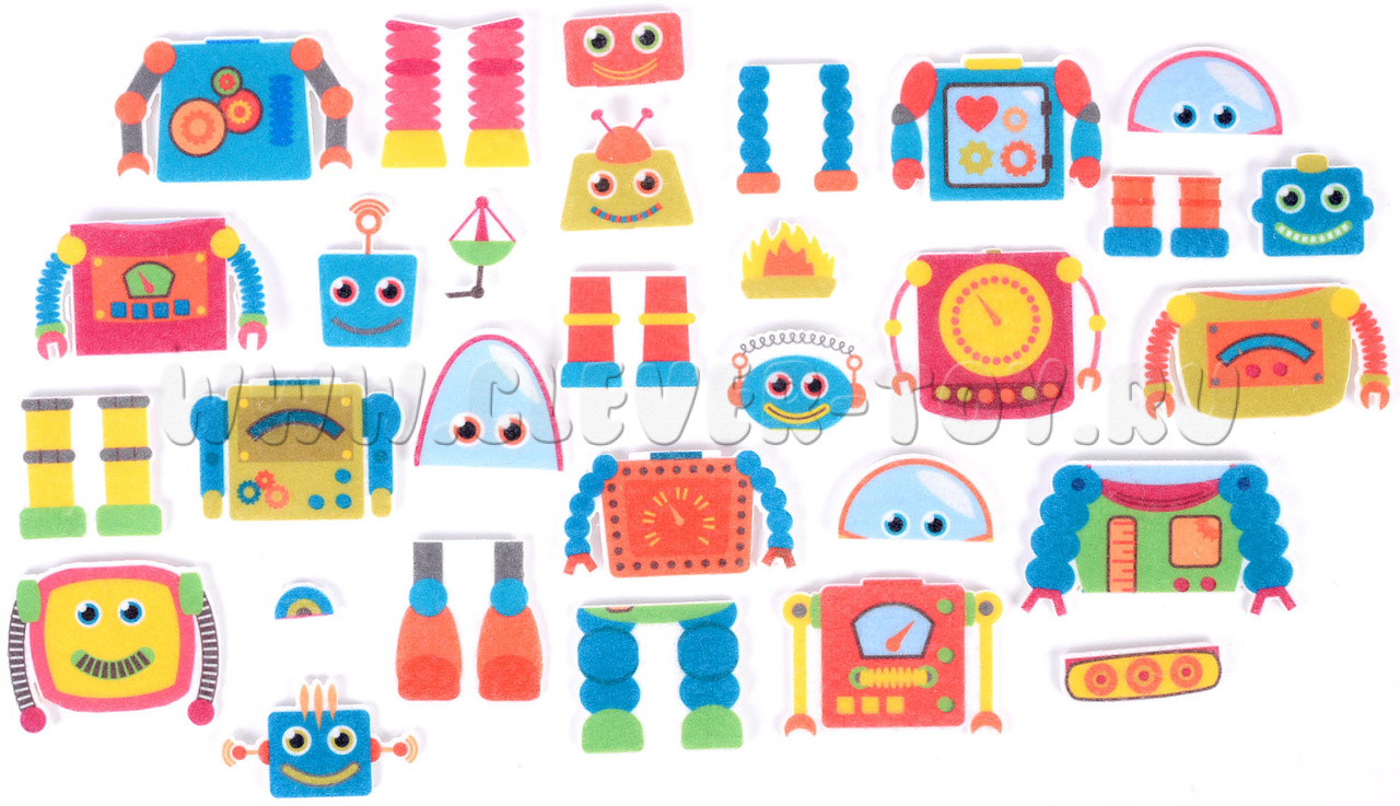 • элементы роботов – головы, туловища, ноги, всего можно создать от 4 до 6 разных роботов; все детали можно соединять друг с другом, поэтому число итоговых вариантов дизайна роботов увеличивается;