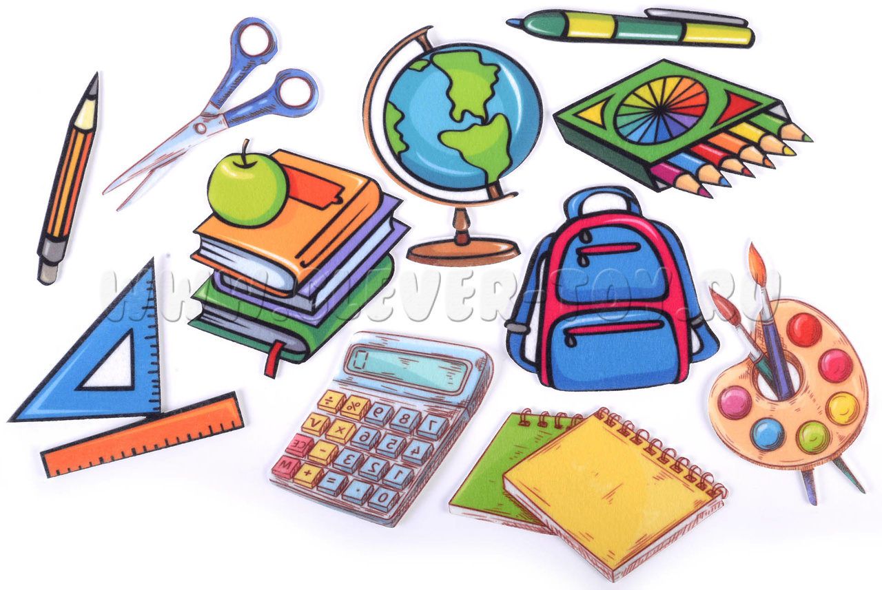 В комплекте 11 фигурок с изображениями школьных принадлежностей на липучках. Размеры фигурок: от 1,5×11 см до 9×12,5 см. Материал: фетр.