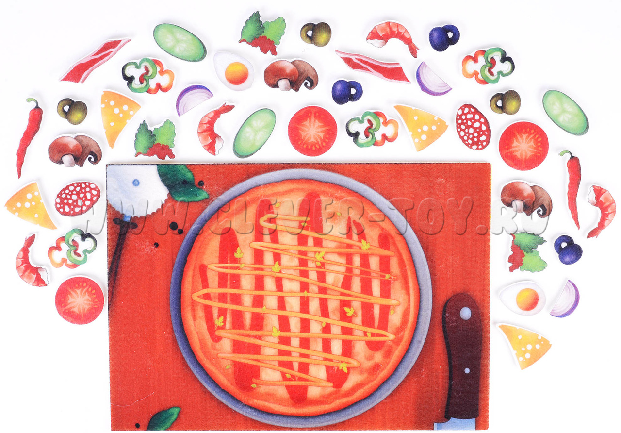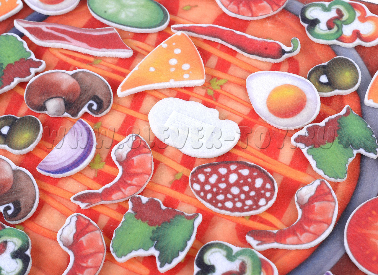 Детское игровое пособие сделано из фетра в виде аппликации и способное увлечь ребенка в мир увлекательной игры. Благодаря конструктору ребенок сможет побыть в роли кулинара и самому решить из чего будет создана его пицца. Игра сделана из безопасных и прочных материалов, которые не испортятся в процессе игр. Часть деталей выполнены вручную и имеет полное сходство с прототипами.