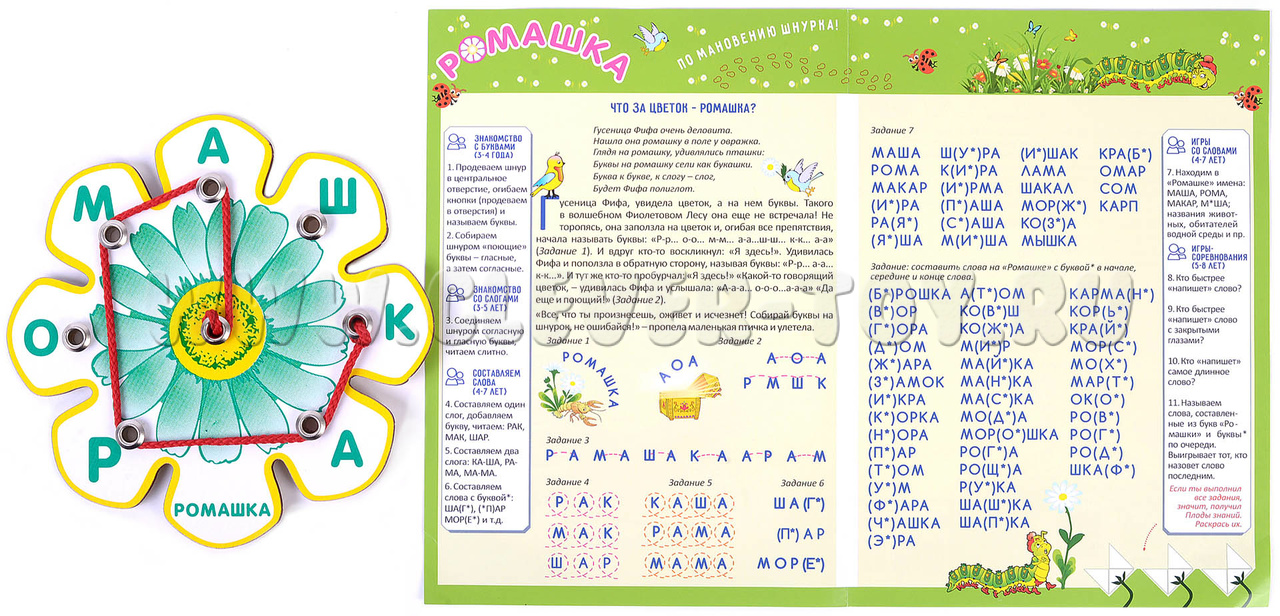 Игра "Ромашка" из серии игр Воскобовича "Шнур-грамотей" предназначена для детей 3-8 лет.