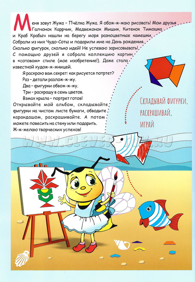 Альбом фигурок – наглядное пособие для игр с конструкторами серии «Чудо-Соты». Имеет неограниченные возможности для проявления творчества и развития ребёнка. Сегодня он складывает фигурки по схемам из альбома, а завтра – уже придумывает свои, развивая фантазию, глазомер, укрепляя начальные знания о математике и геометрии.