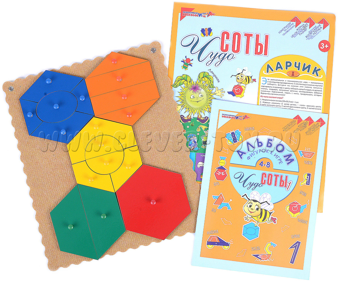 Плоскостной конструктор для раннего развития детей. «Чудо-соты 1» легко превращаются в различные фигуры и оригинальные предметные силуэты: человечки, предметы одежды, технику и транспорт, растения, домики, зверей, буквы, цифры и т.д. В «Чудо-сотах 1» заложены бесконечные возможности для творчества.
