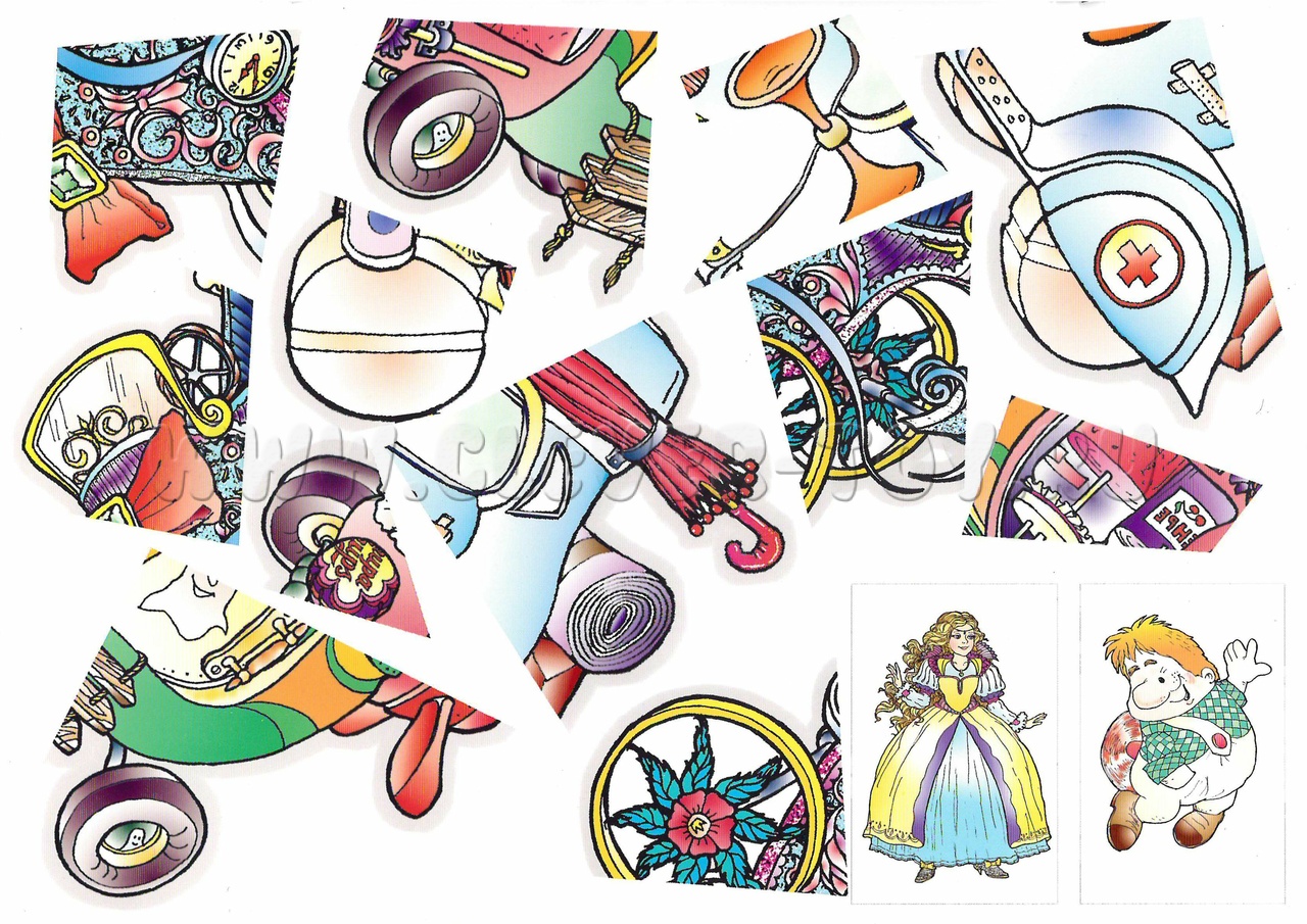 - Аккуратно наклеить собранные сказочные машинки и их владельцев на нужные листы альбома, найти хозяина каждой машины и приклеить его портрет.