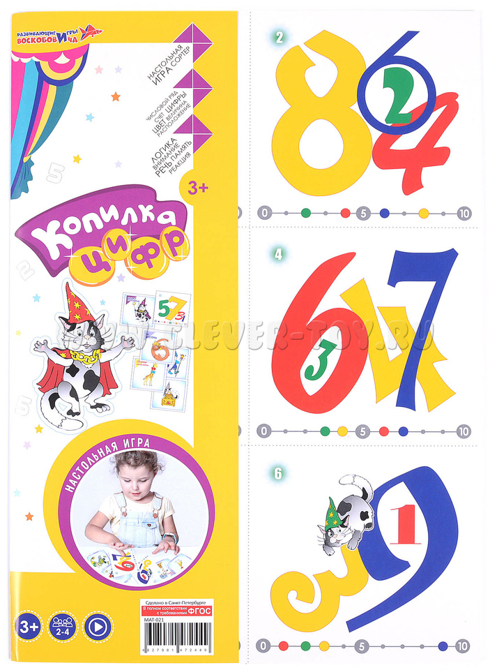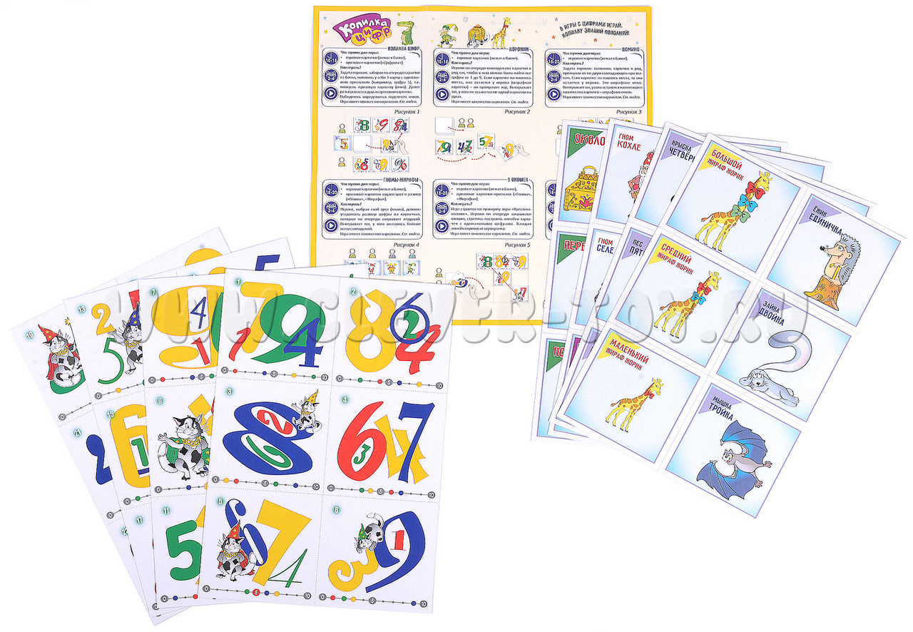 Цель всех игр – поиск цифр с заданными отличительными признаками. Дополнительные опции в виде призовых карточек позволяют придумывать множество игр.