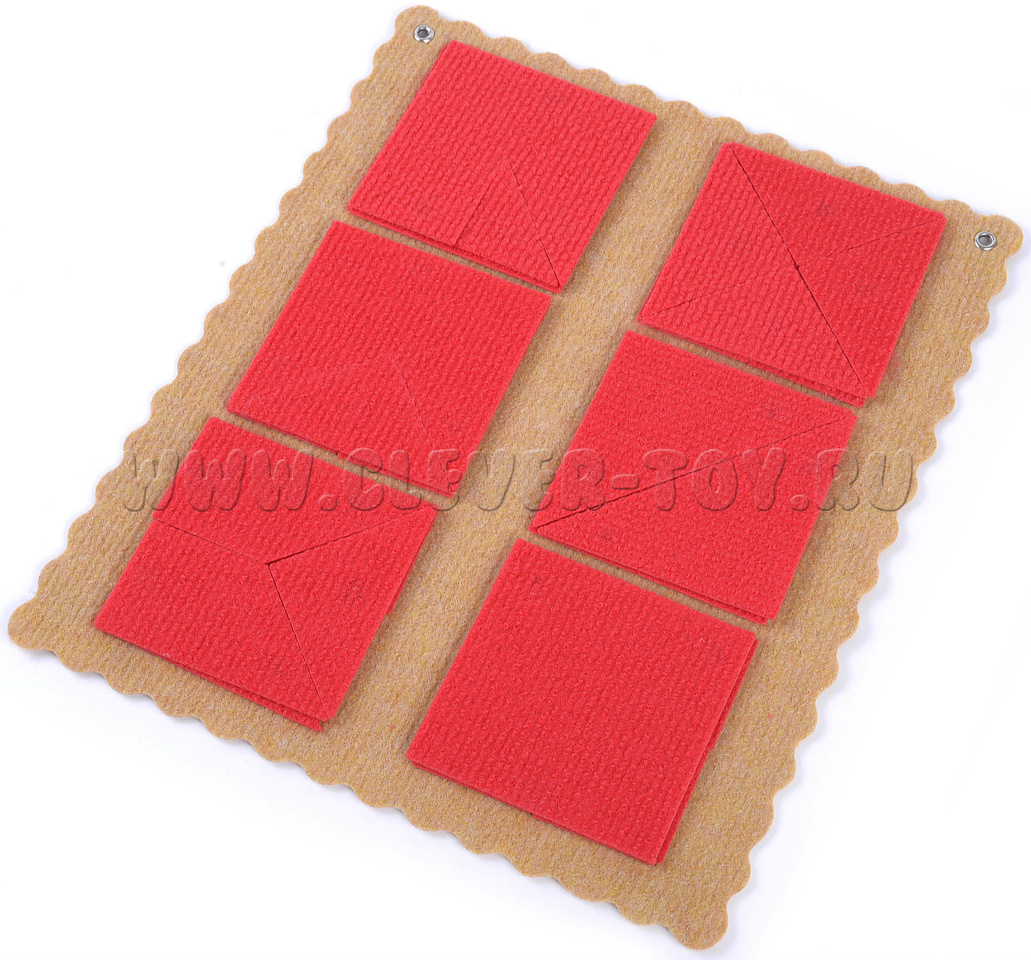 - 36 элементов из ковролина (многоугольник 1 – 1 шт., многоугольник 2 – 1 шт., многоугольник 3 – 1 шт., многоугольник 4 – 1 шт., треугольник маленький – 10 шт., треугольник средний – 7 шт., треугольник большой – 2 шт., квадрат большой – 1 шт., прямоугольник – 2 шт., трапеция 1 - 3 шт., трапеция 2 – 1 шт., квадрат маленький – 6 шт.;