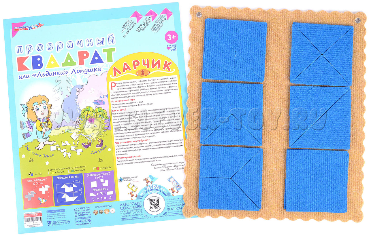 Конструктор «Прозрачный квадрат Ларчик» - эффективное средство накопления детьми логико-математического опыта, дающего возможность познавать мир самостоятельно. Игровое пособие можно использовать как самостоятельно, так и с развивающими играми и пособиями: «Коврограф Ларчик», «МиниЛарчик», «Прозрачный квадрат Ларчик (других цветов)», «Прозрачный квадрат», «Набор цифр и знаков Ларчик», «Треузорчик Ларчик».
