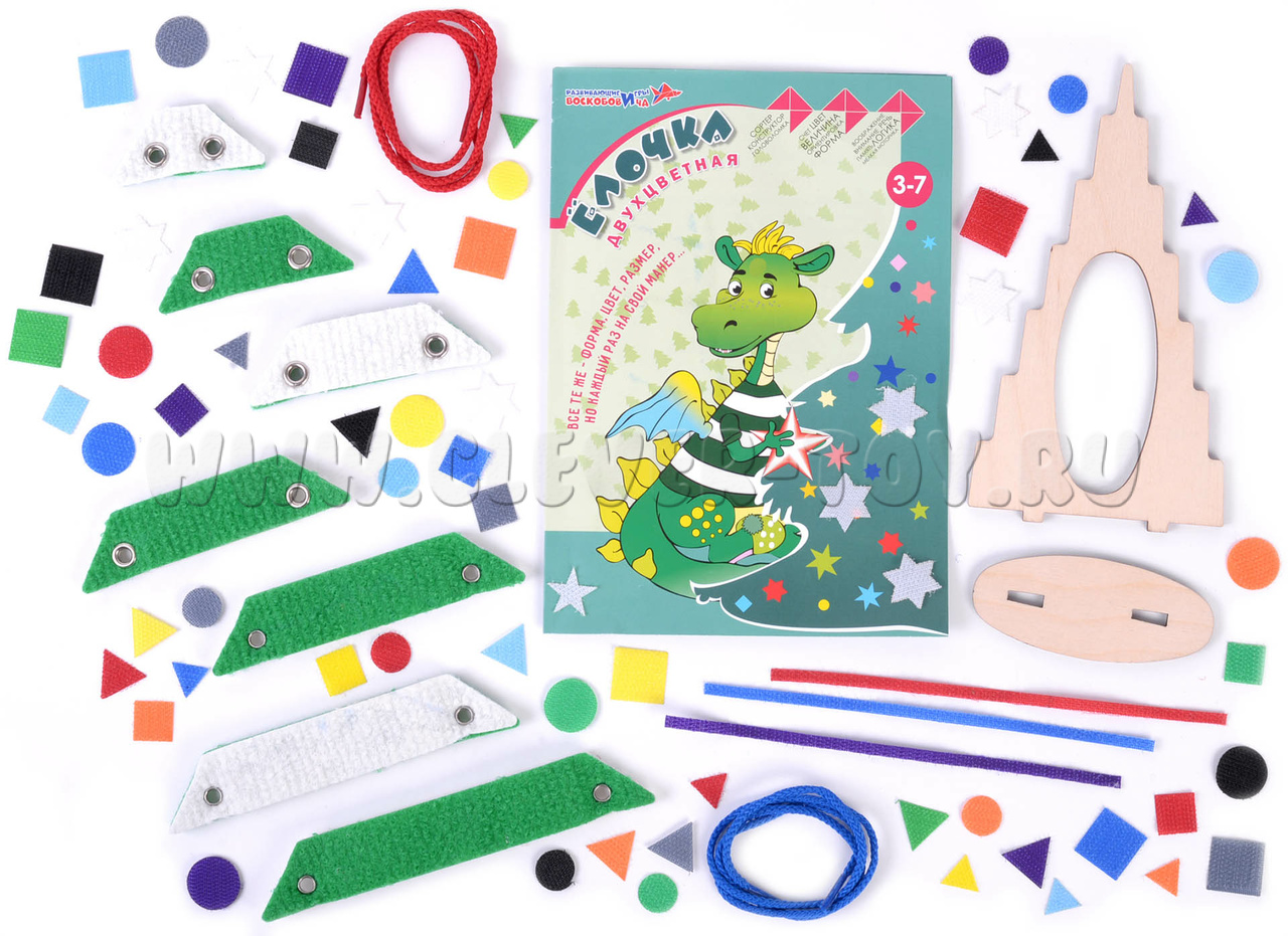 • задания и упражнения на знакомство с игрой, украшение ёлочки и конструирование с вариантами усложнения для детей разного возраста.