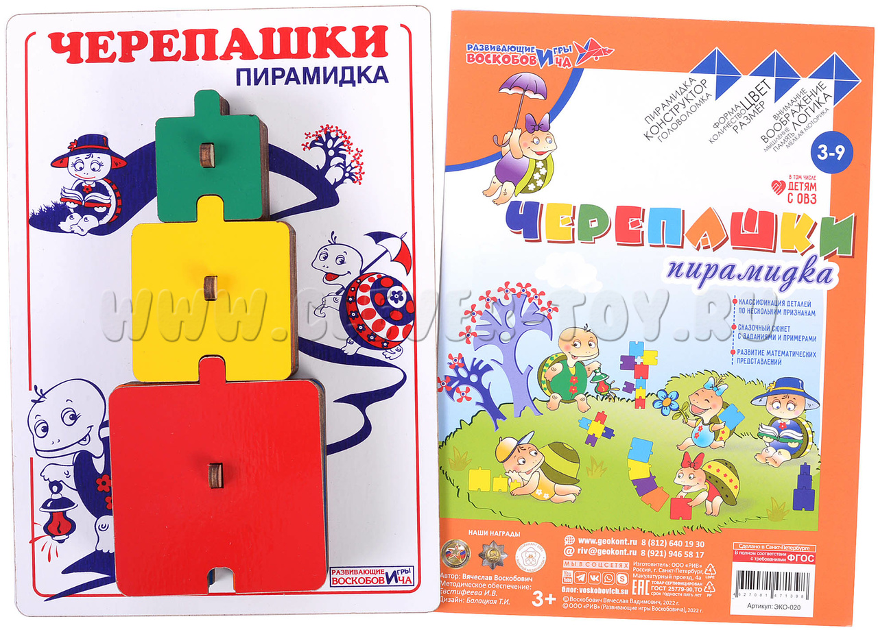 Развивающее игровое пособие «Черепашки. Пирамидка» предназначено для раннего развития детей и для младшего дошкольного возраста: