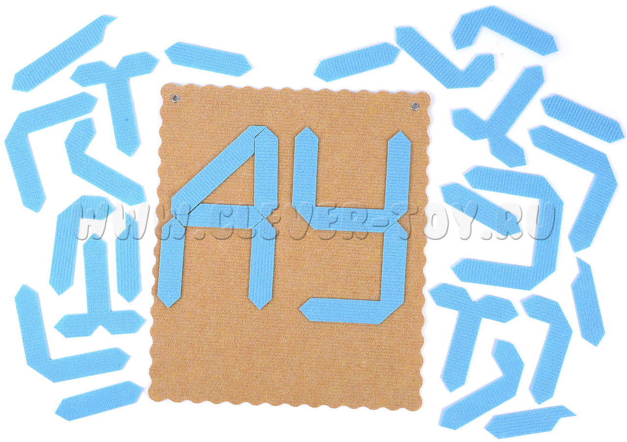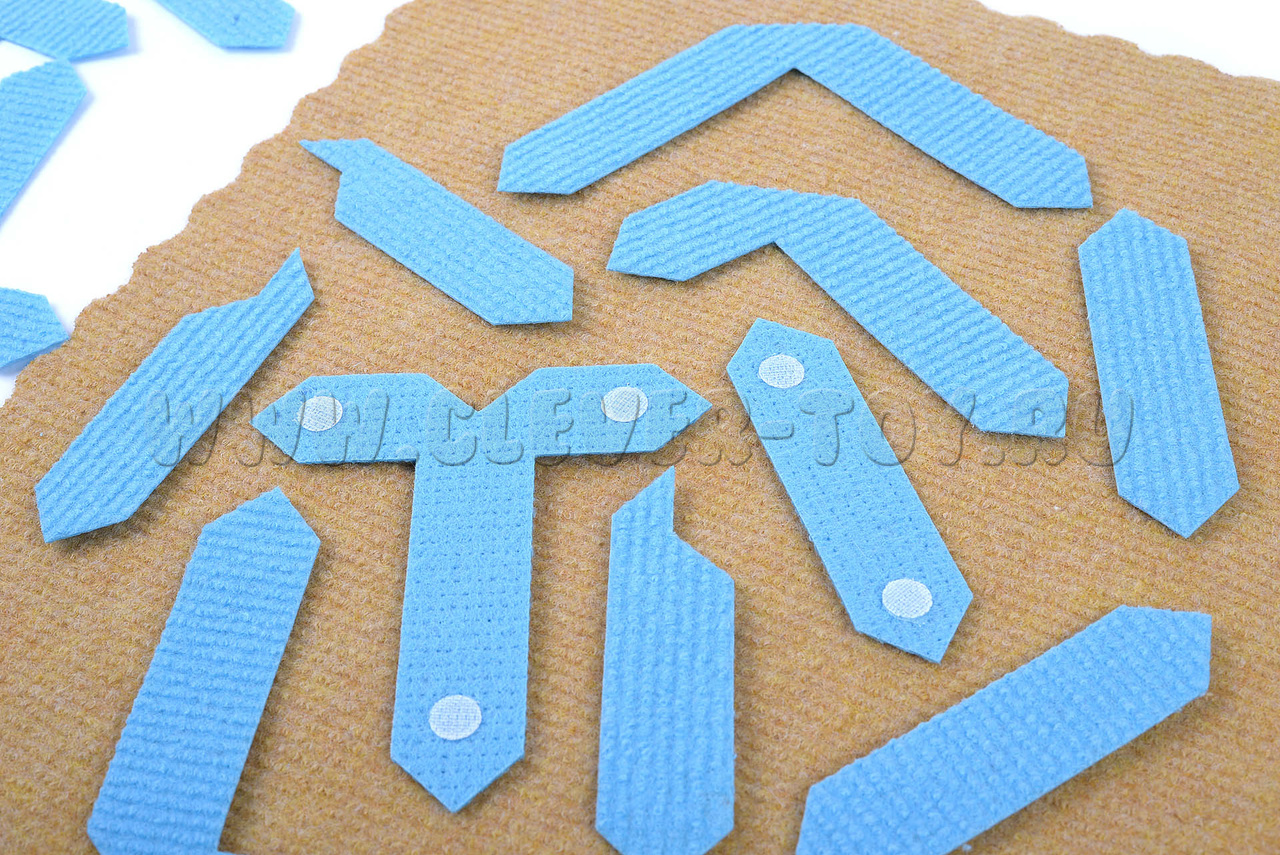 - 30 элементов из ковролина разной формы голубого цвета– «стрелочки» 8 шт., «уголки» 4 шт., «воротики» 2 шт., «клюшки» 6 шт., «лапки» 4 шт., «совочки» 6 шт.