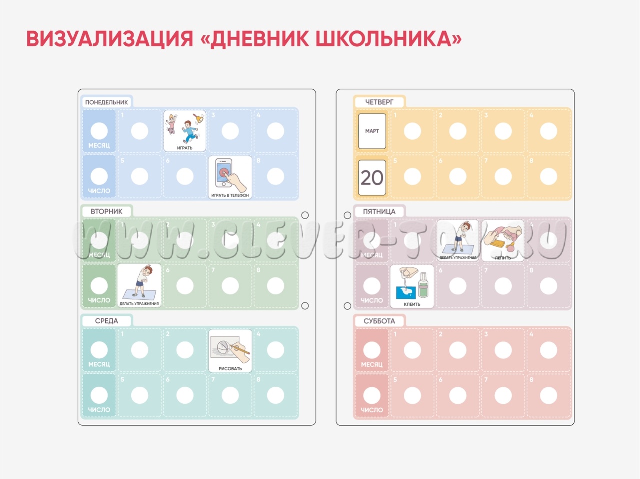 Визуальные опоры для ориентировки ребенка в последовательности действий/заданий в течении занятия или урока. Помогают фиксировать успешность выполнения заданий, поддерживают мотивацию ребенка. Карточки для мальчика и для девочки.