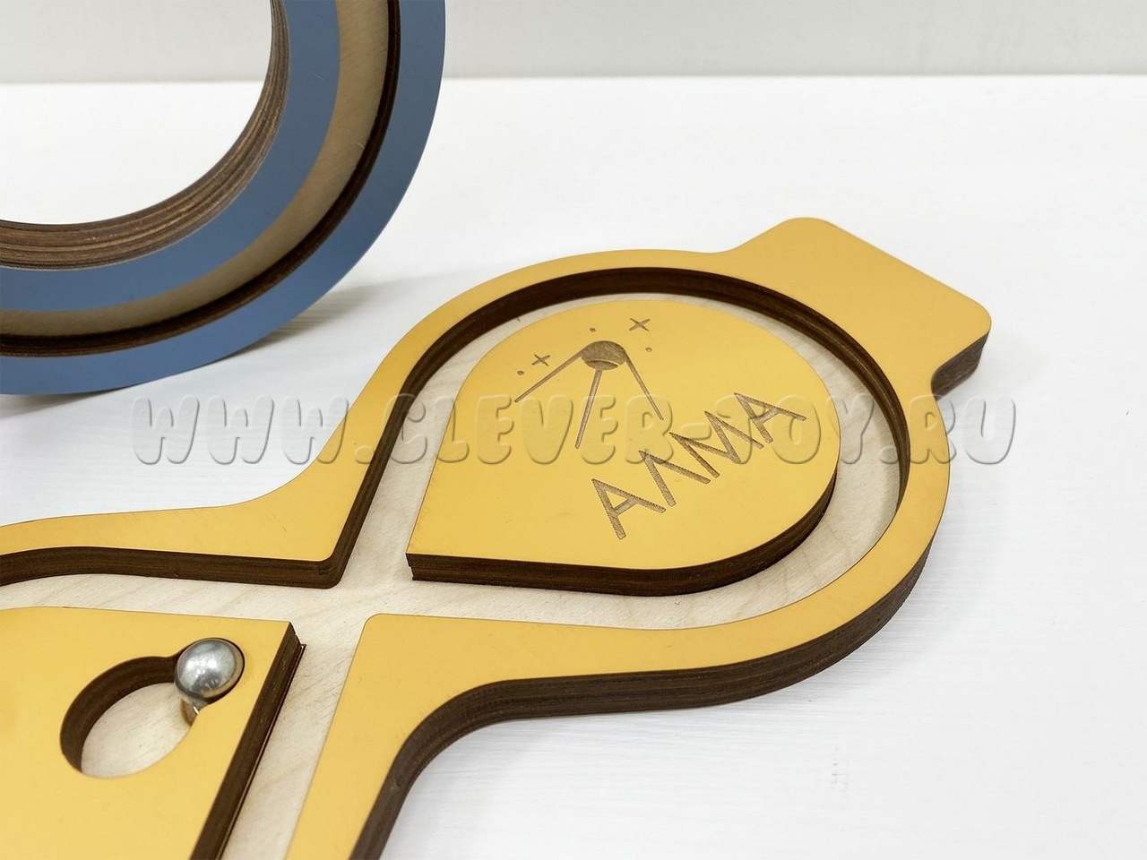 Изделия изготовлены из высококачественной берёзовой фанеры и покрыты полиуретановыми красками, устойчивыми к истиранию и выцветанию. Металлический шарик закреплён на магните.