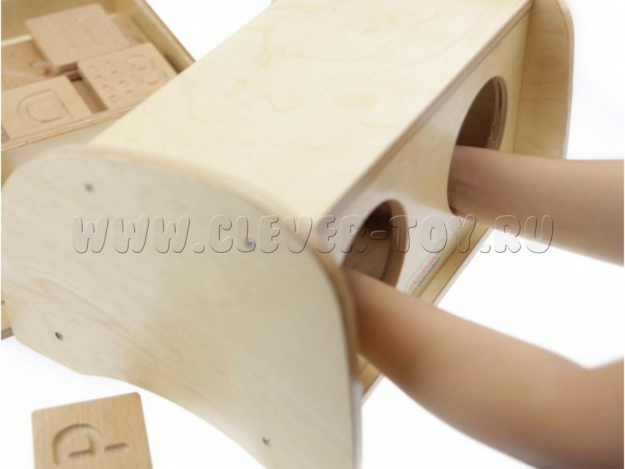 • Два специальных отверстия для рук позволяют ребенку исследовать содержимое коробки обеими руками