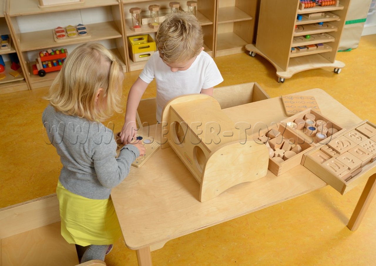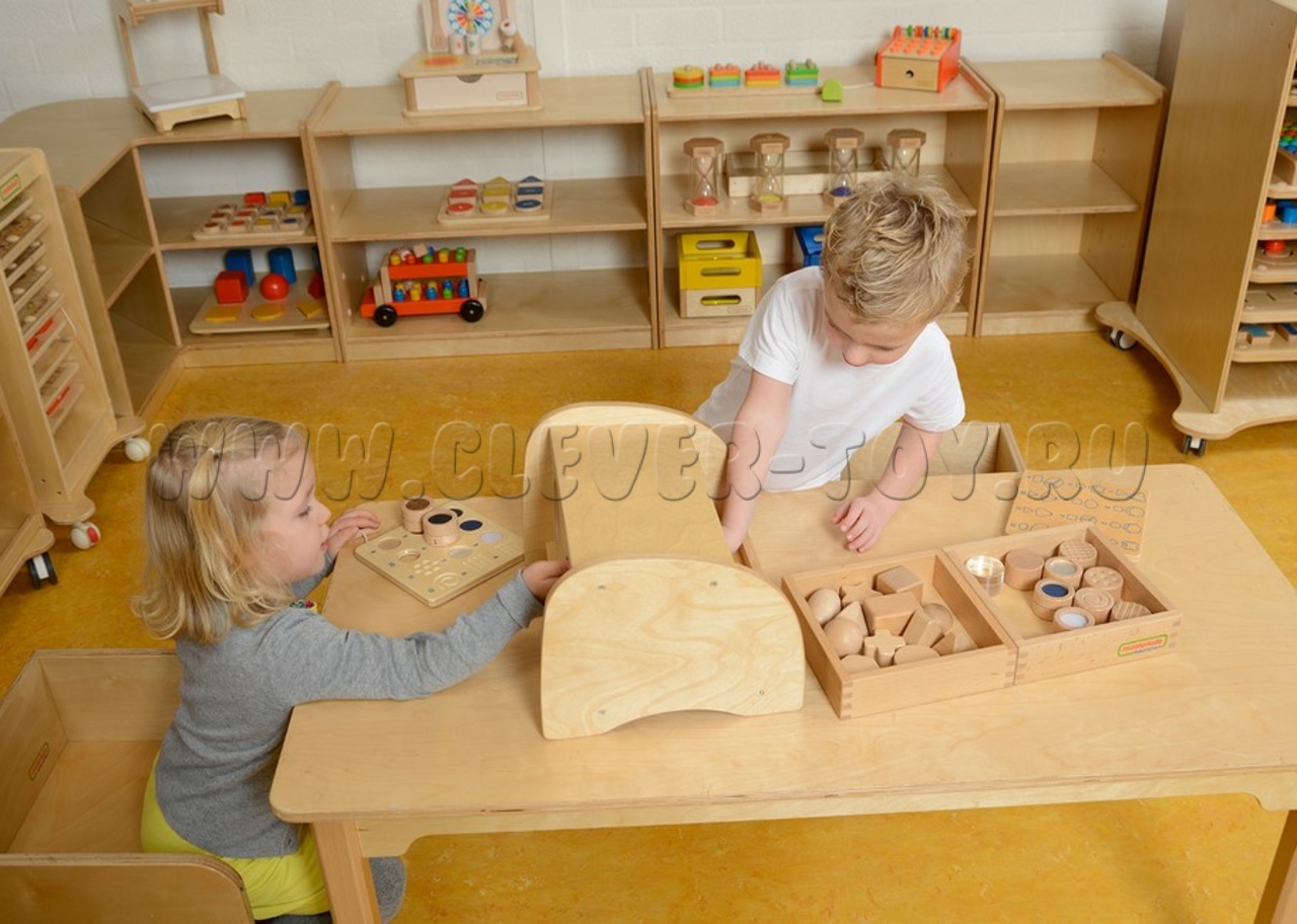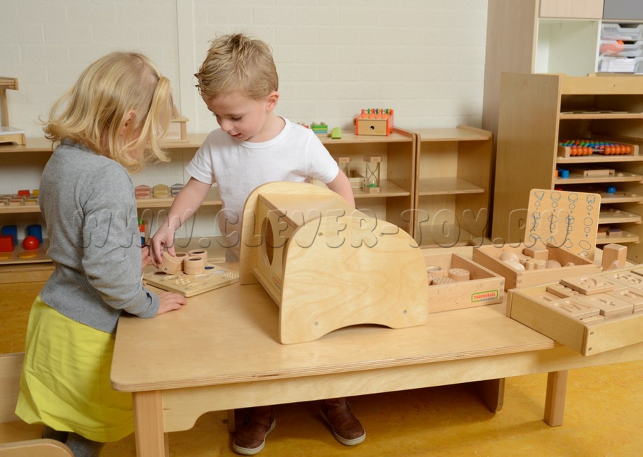 Тактильный ящик идеально сочетается с дополнительными наборами "Тактильные бочонки" (артикул ME05359) и "Тактильные формы" (артикул ME05342)