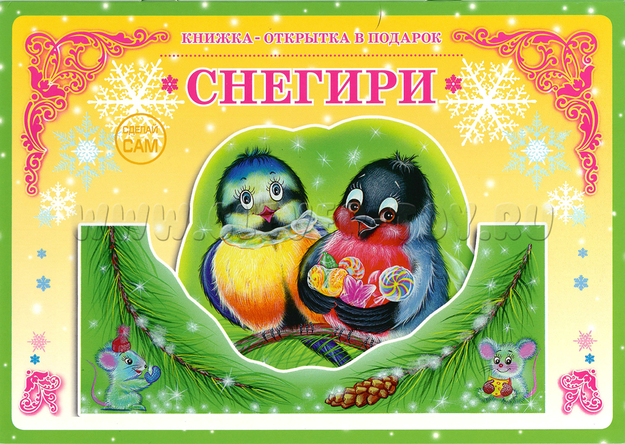 3D объёмная открытка-книжка для детского творчества "Снегири".