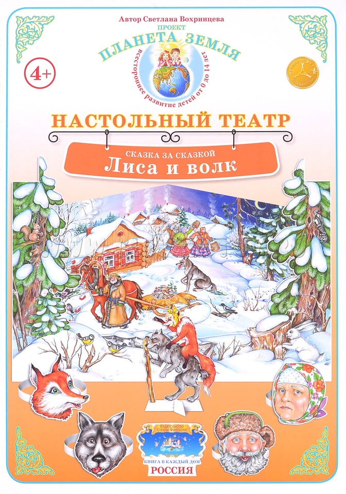 Театр состоит из 4 действующих персонажей: ведущий, дед, баба, лиса, волк.