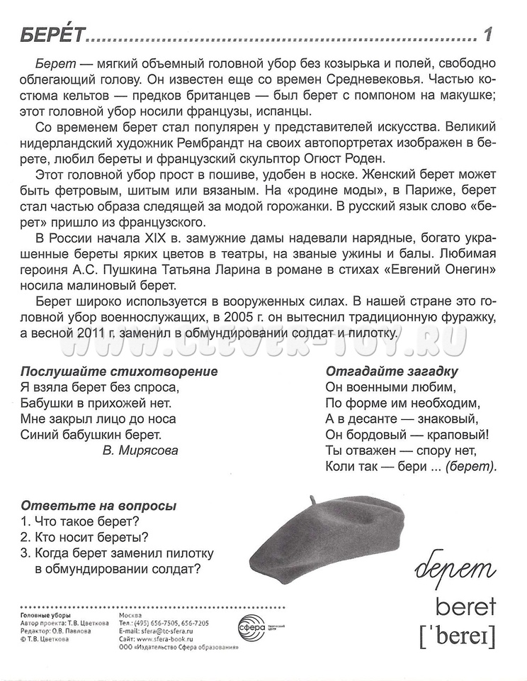Набор карточек "Головные уборы"- это 16 демонстрационных картинок для познавательного и речевого развития. На обороте каждой предметной картинки - описание, вопросы для ребёнка, название на русском и английском языках.