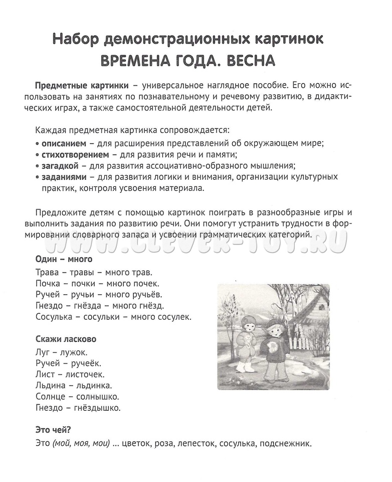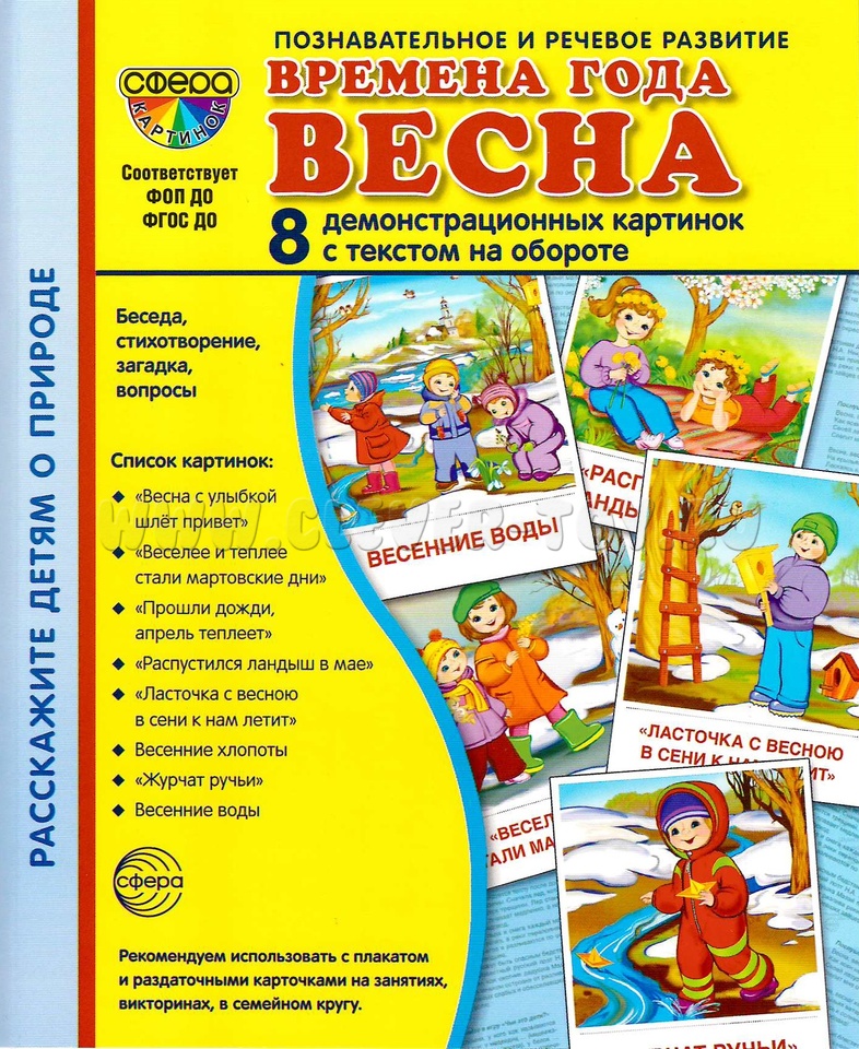 Набор демонстрационных картинок Времена года. Весна. Предметные картинки - универсальное наглядное пособие. Его можно использовать на занятиях по познавательному и речевому развитию, в дидактических играх, а также самостоятельной деятельности детей.