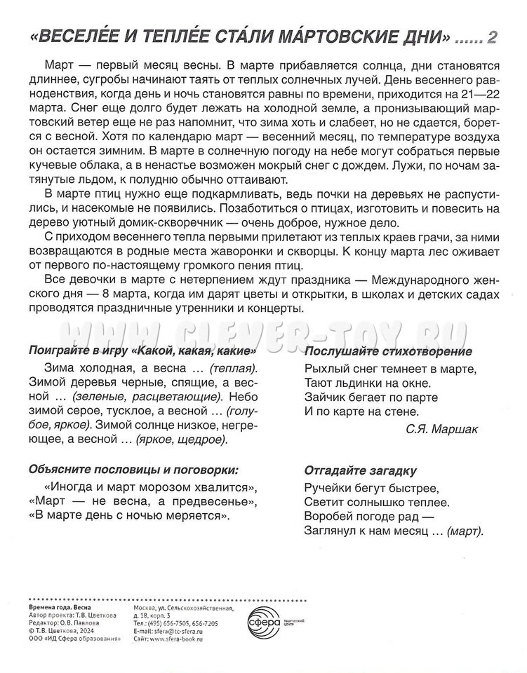 На 8 ярких картинках пособия изображены весенние сюжеты. Предложите детям с помощью картинок поиграть в разнообразные игры для развития речи. Они помогут устранить трудности в формировании словарного запаса и усвоении грамматических категорий.