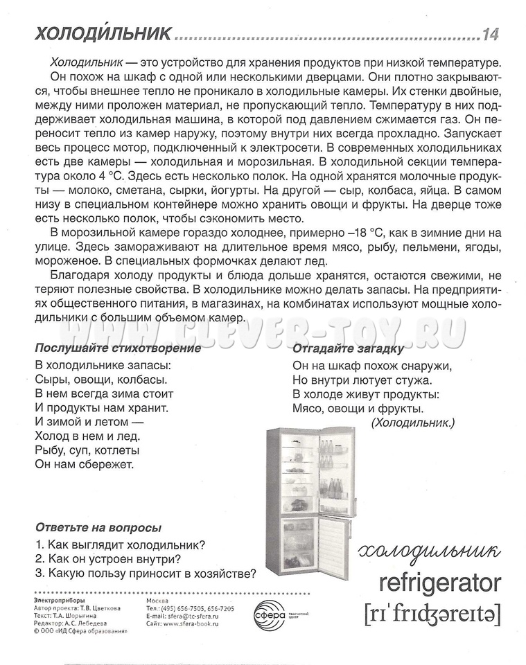 На лицевой стороне каждой карточки дается цветное изображение элестроприбора, на обратной - подробное описание, из которого дети узнают, описание каждого прибора, принципы его работы и важные меры предосторожности.
