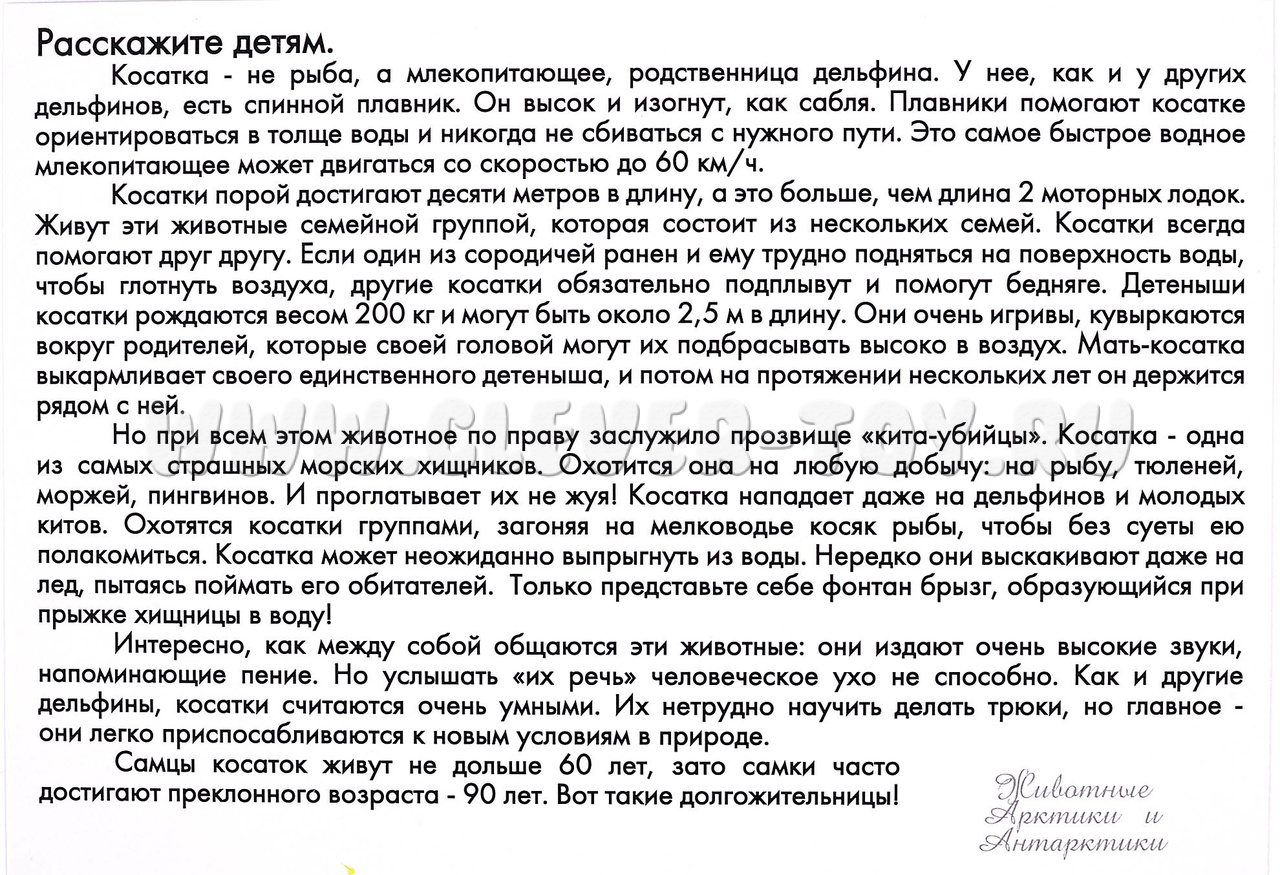 Например: «Интересно, как меду собой общаются косатки: они издают очень высокие звуки, напоминающие пение. Но услышать их «речь» человеческой ухо не способно Как и другие дельфины, косатки считаются очень умными».