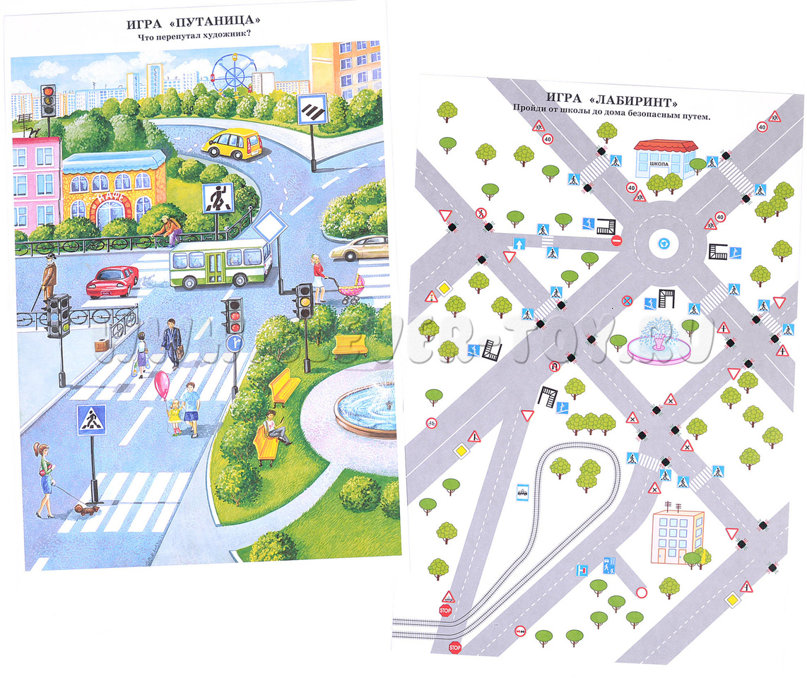 • 10 иллюстрированных правил безопасного поведения на дороге, в том числе правила, поясняющие знаки;