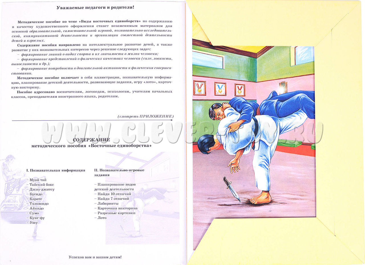 Методическое пособие с дидактическим материалом "Восточные единоборства" за авторством Станислава Вохринцева адресовано педагогам ДОО, воспитателям, логопедам, психологам и родителям и подойдет для занятий с детьми с младшего дошкольного возраста. Оно нацелено на: