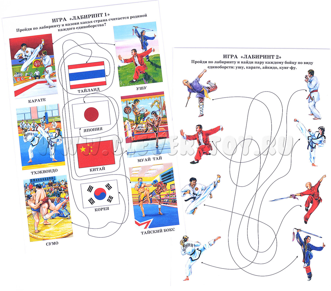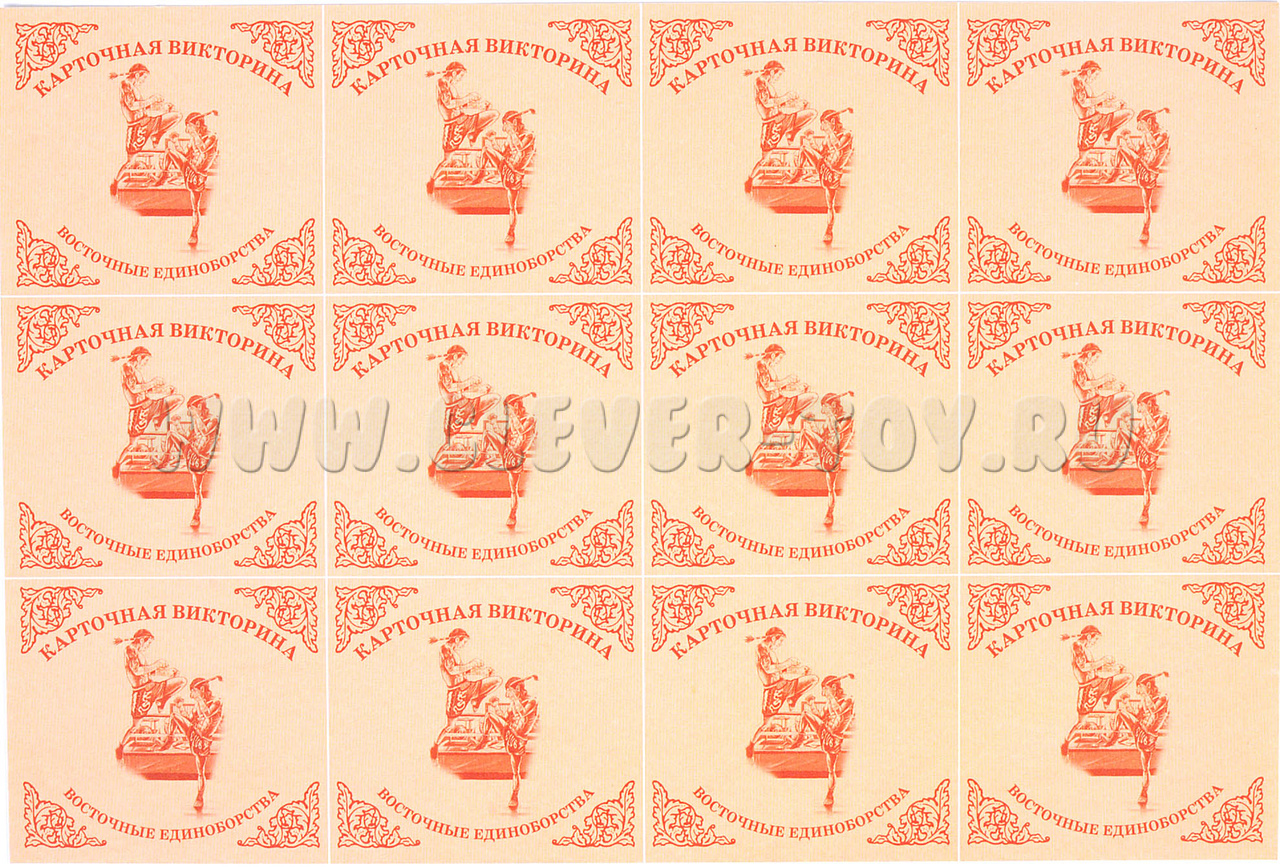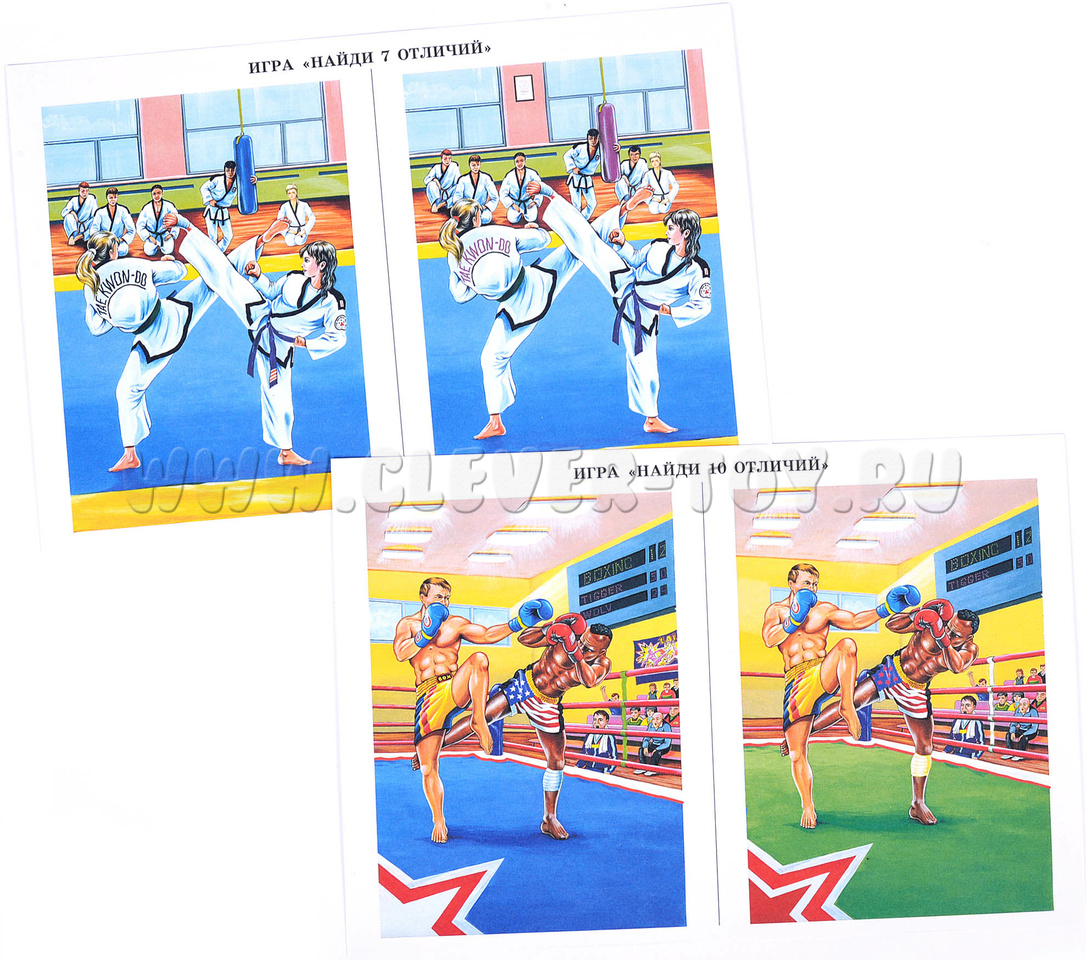 • 10 иллюстраций различных видов восточных единоборств, на обороте - описание, краткая историческая справка, несколько интересных тематических фактов;