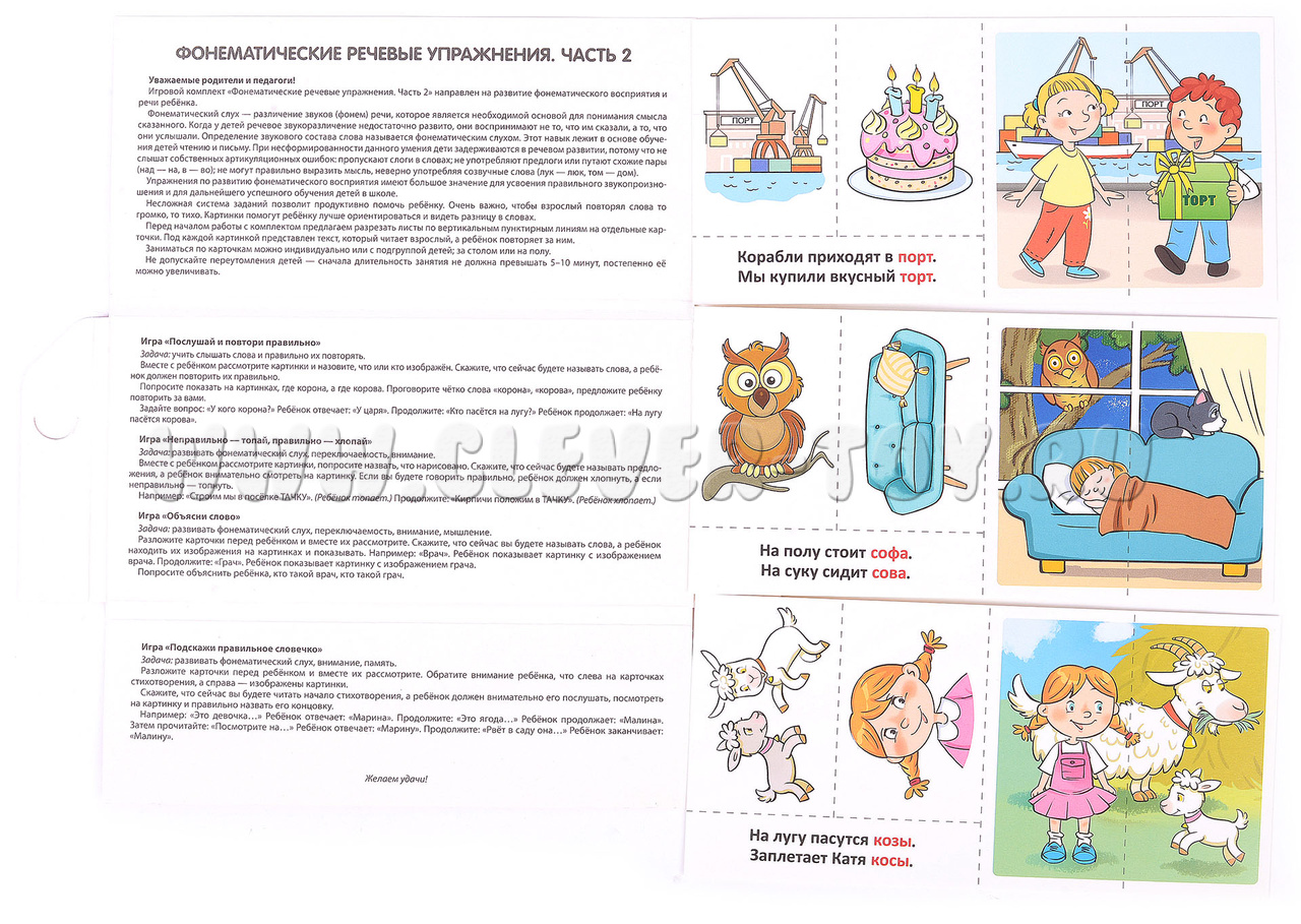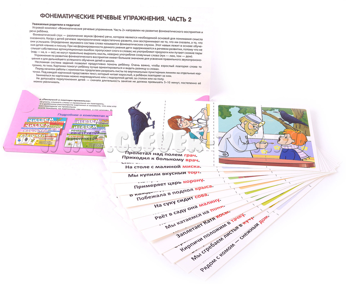 Набор карточек с рисунками. Фонематические речевые упражнения. Часть 2
